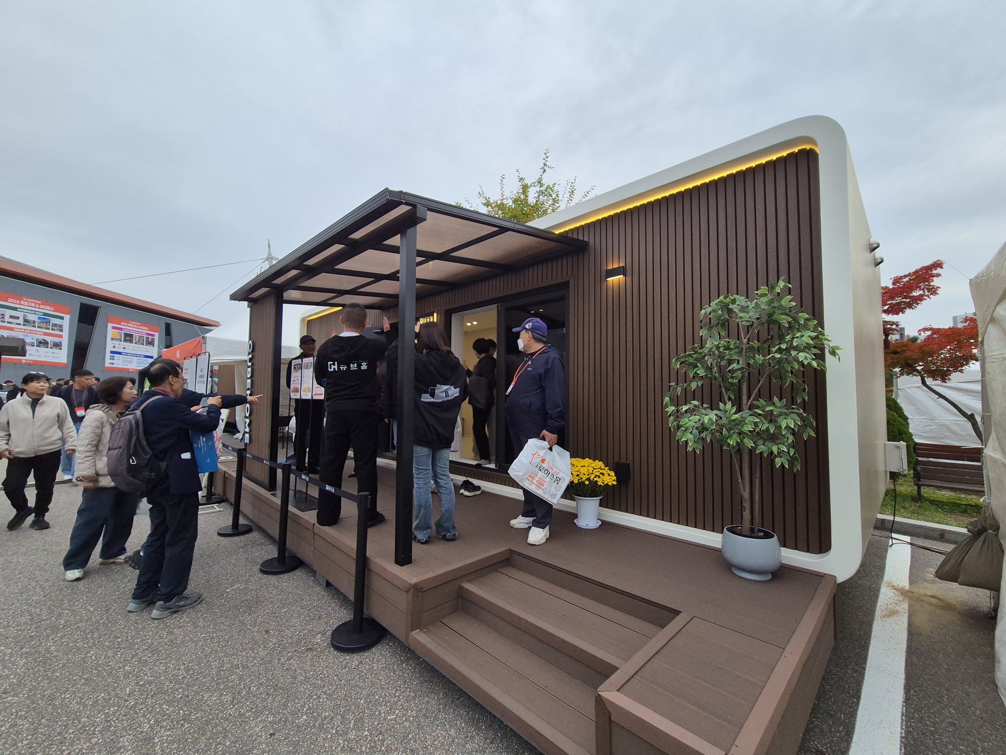 이동식주택을 알아보고 관련 상품들도 둘러본다.