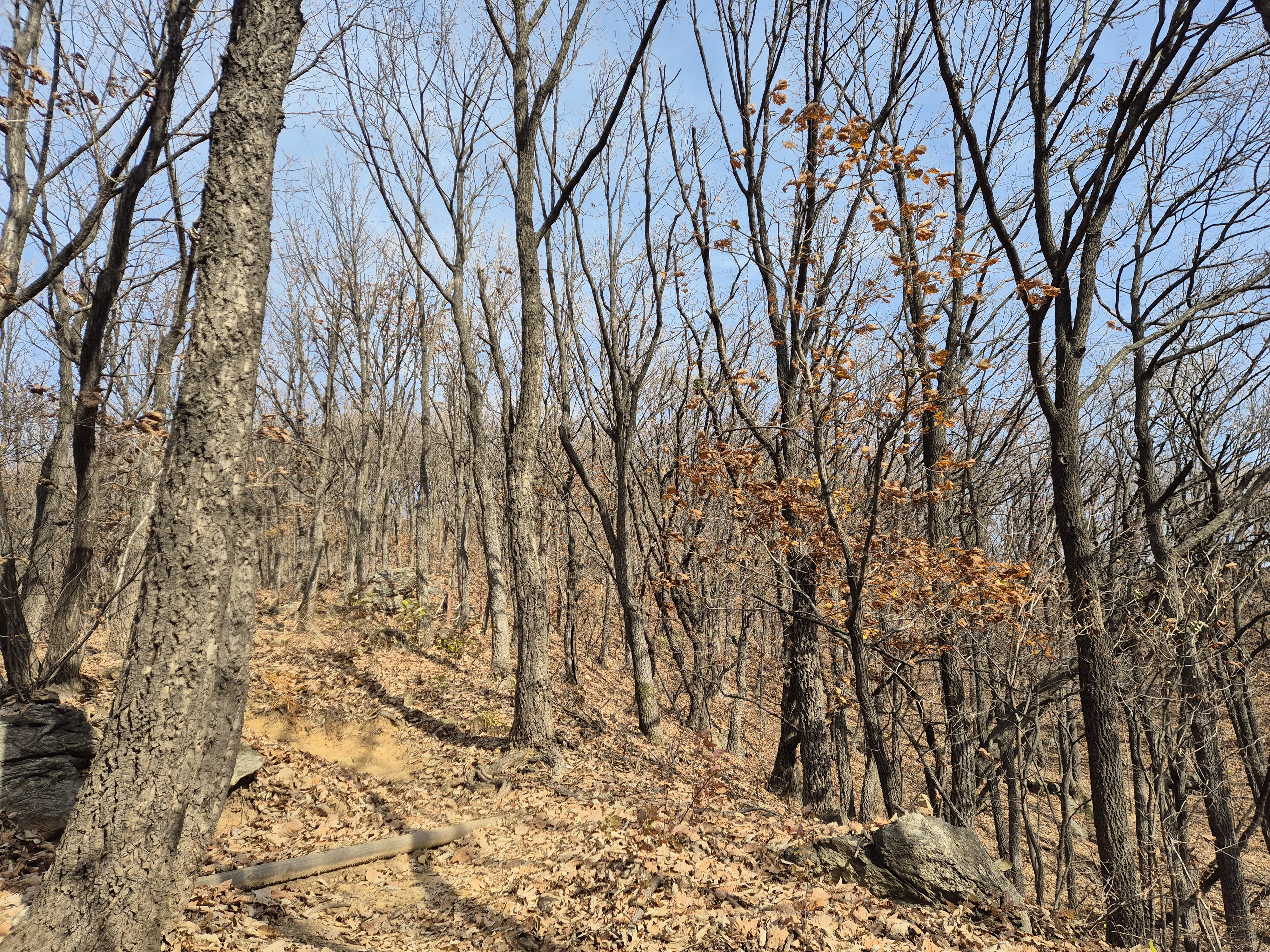 마침 기온도 떨어졌는데 산을 뒤덮은 나무가 거의 갈참나무들이라,
