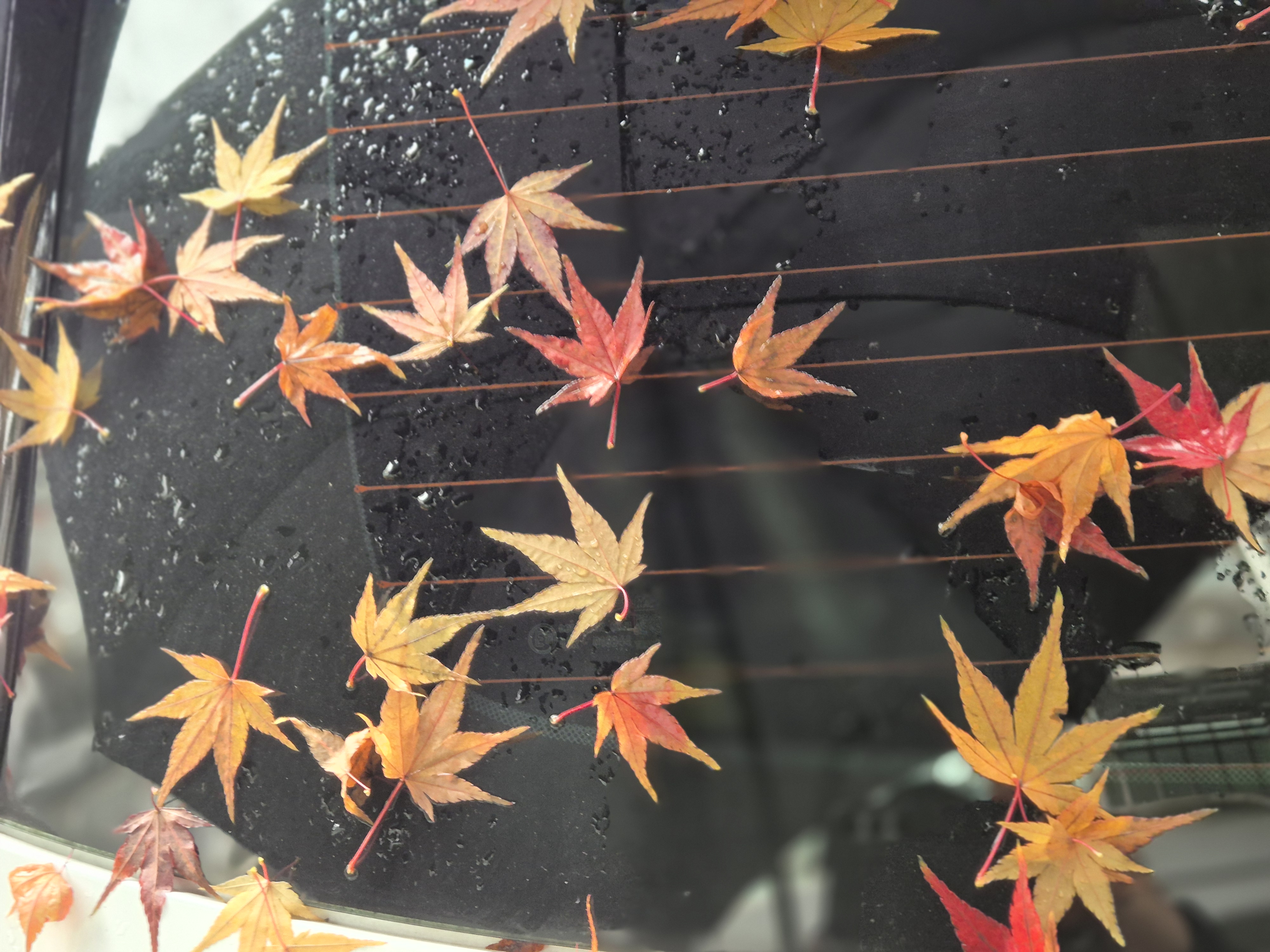 비에 젖어 차유리에 달라붙은 낙엽도 가는 가을을 보내는 듯하다.