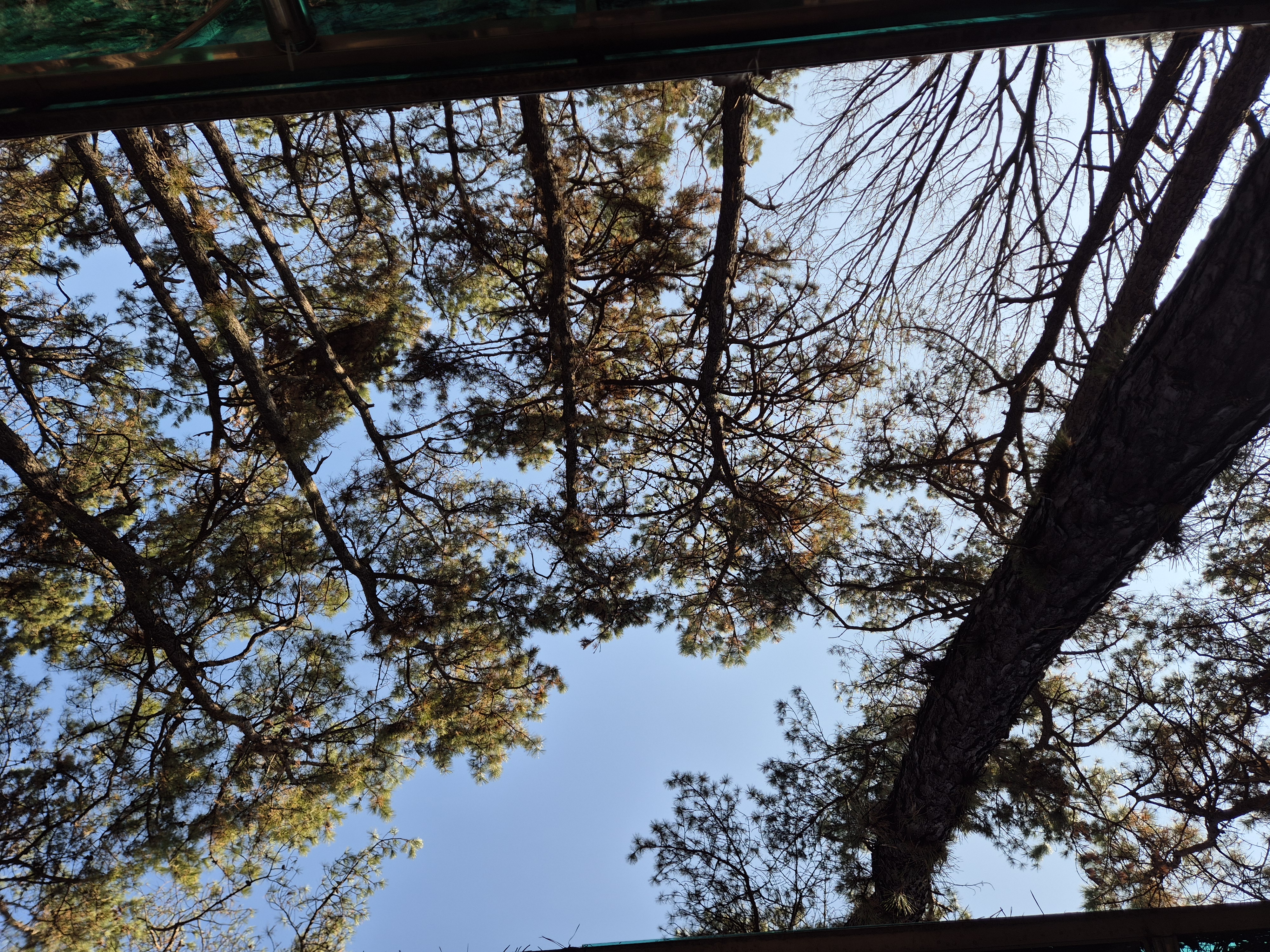 빗물을 막기위해 지붕도 만들었고,누워서 운동하며 지붕에 떨어진 낙엽과