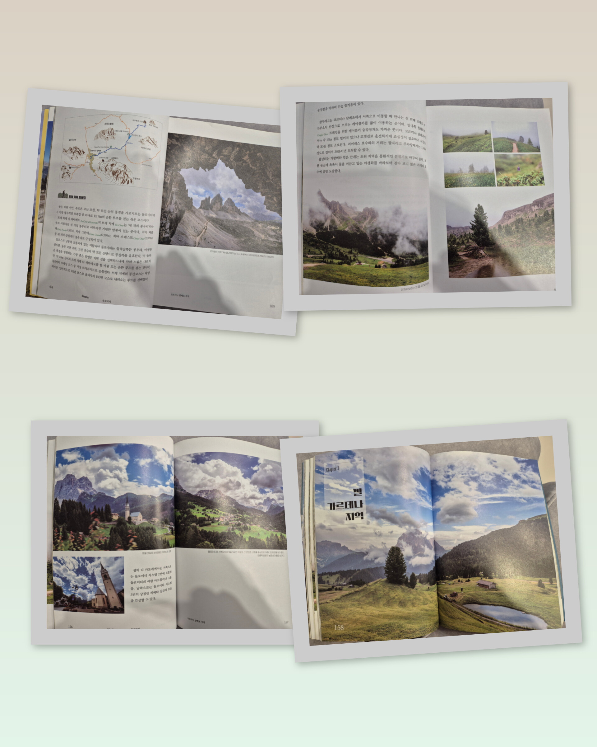 박진성이란 지은이지은이는 돌로미티를 직접 걸으면서 사진과 함께 상세한 기록들을 남겼다.