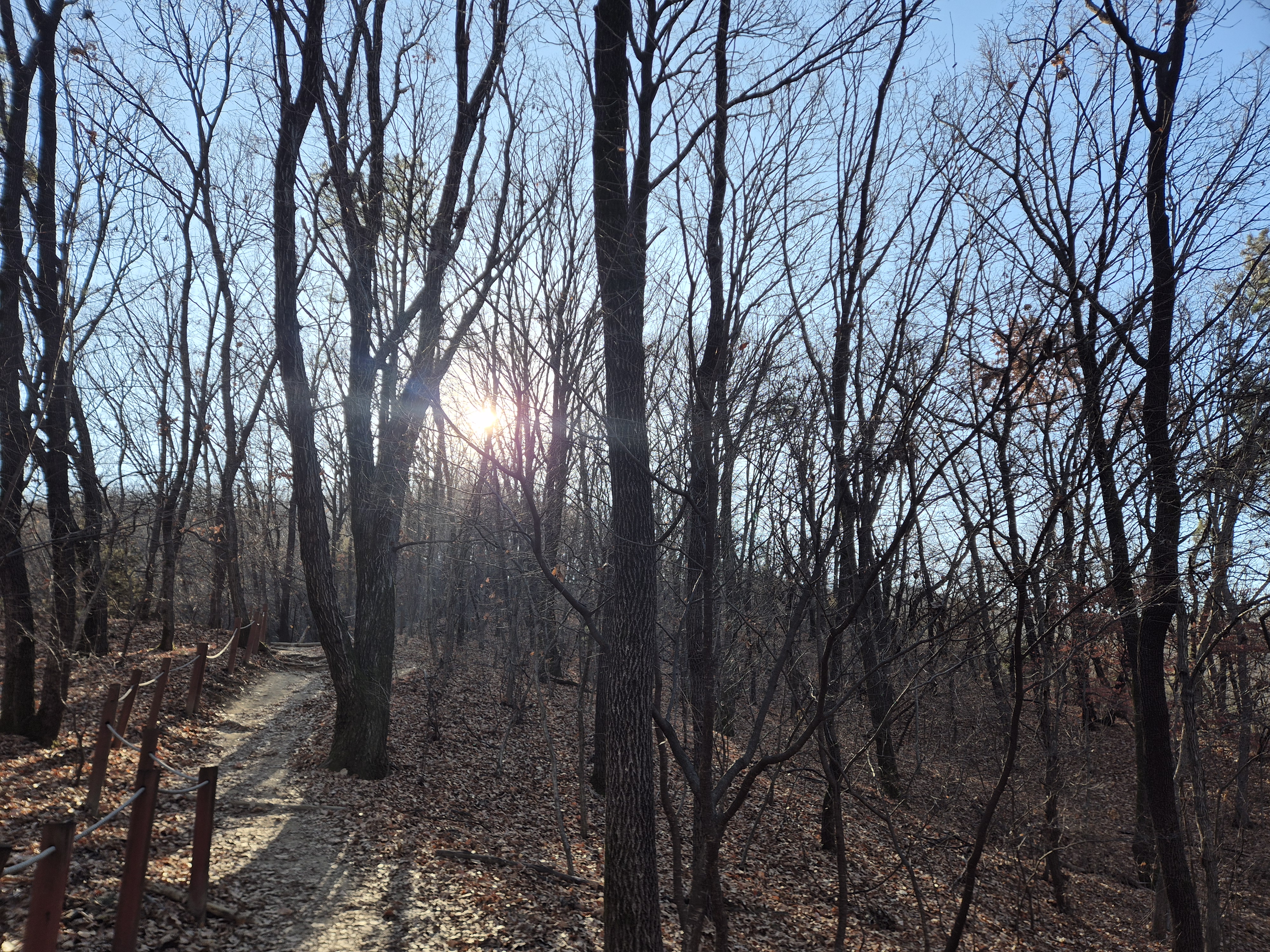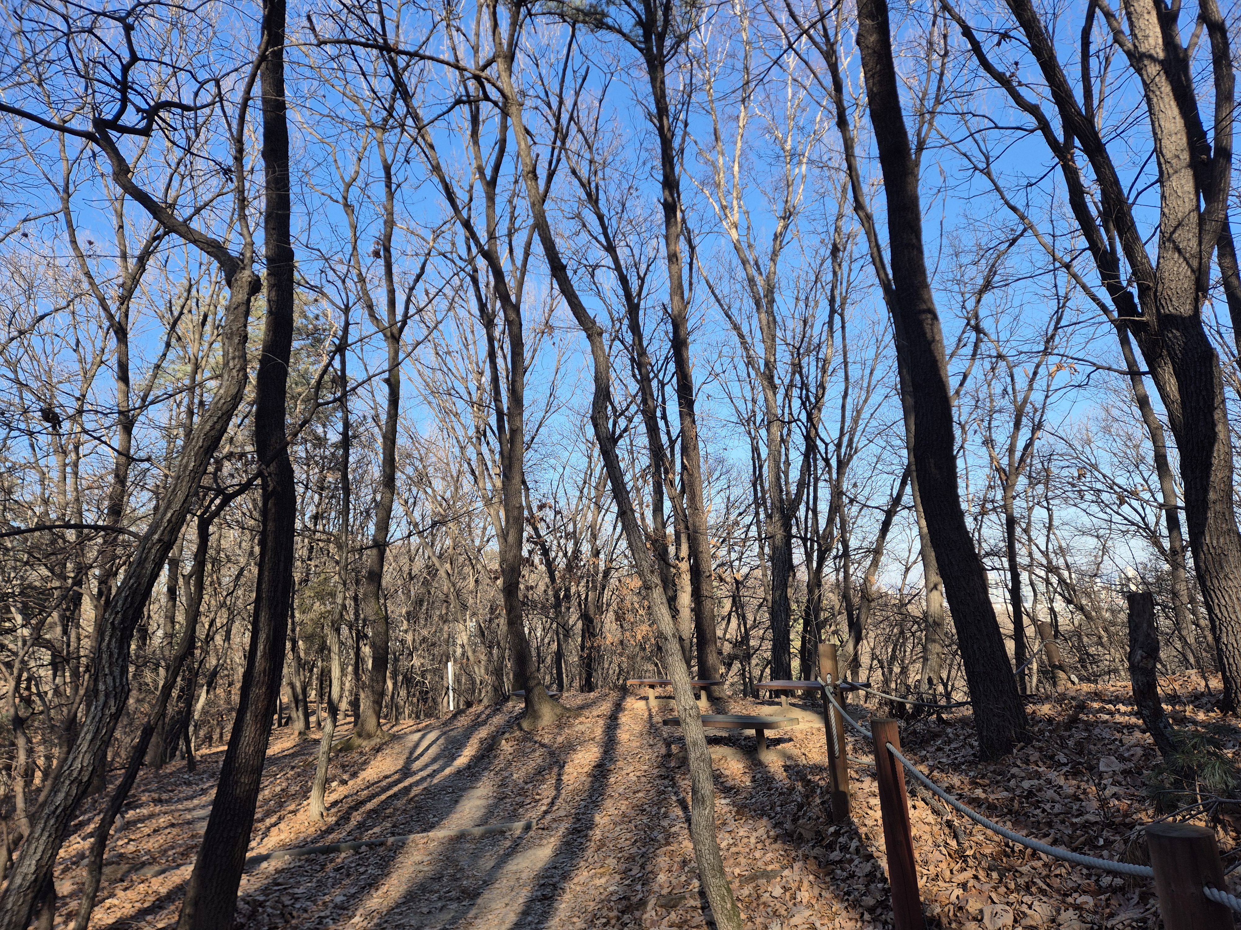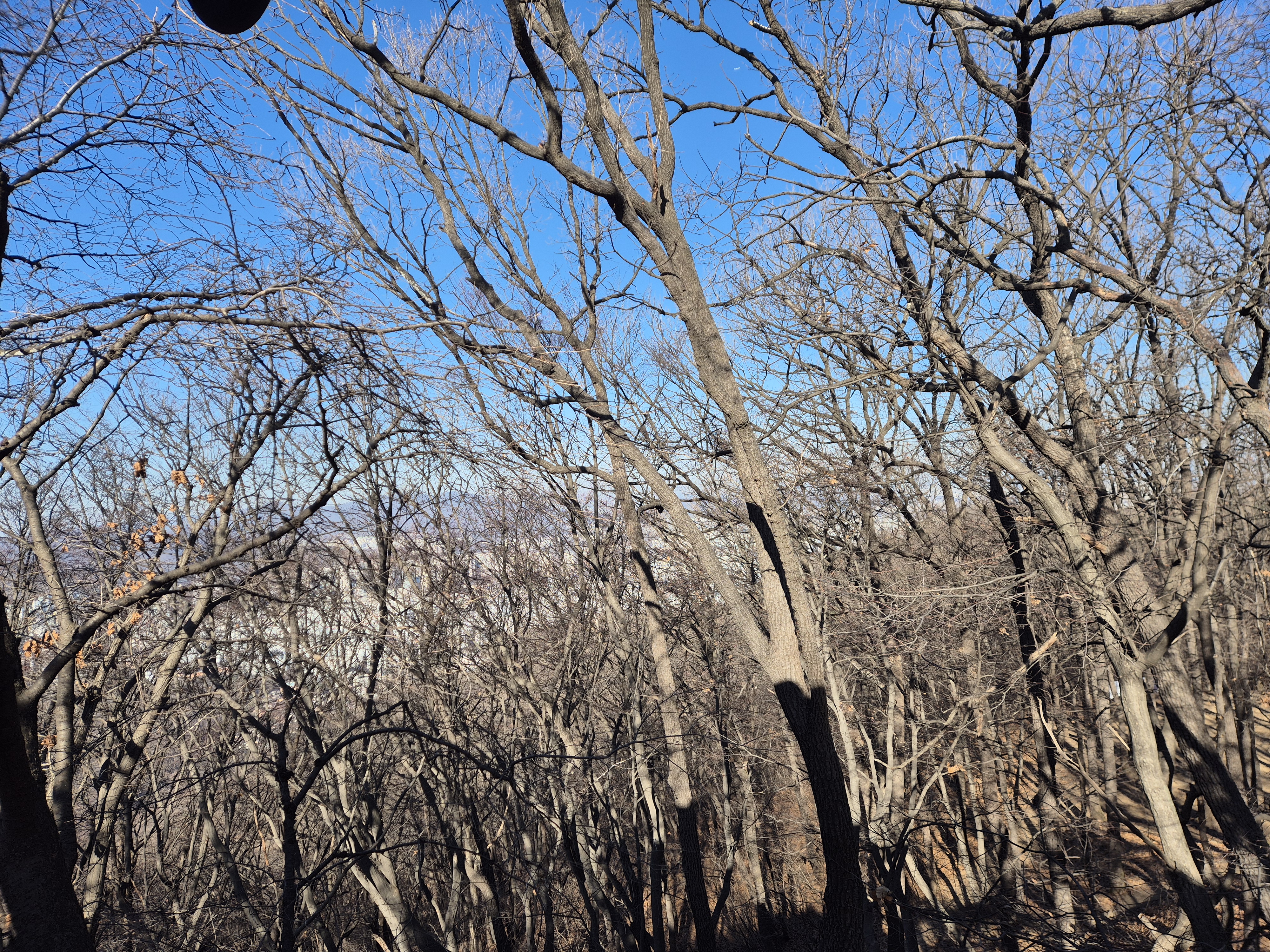 주변에 있는 갈참나무숲이 낙엽을 모두 떨어트리고 앙상한 가지만을 남기고있다.