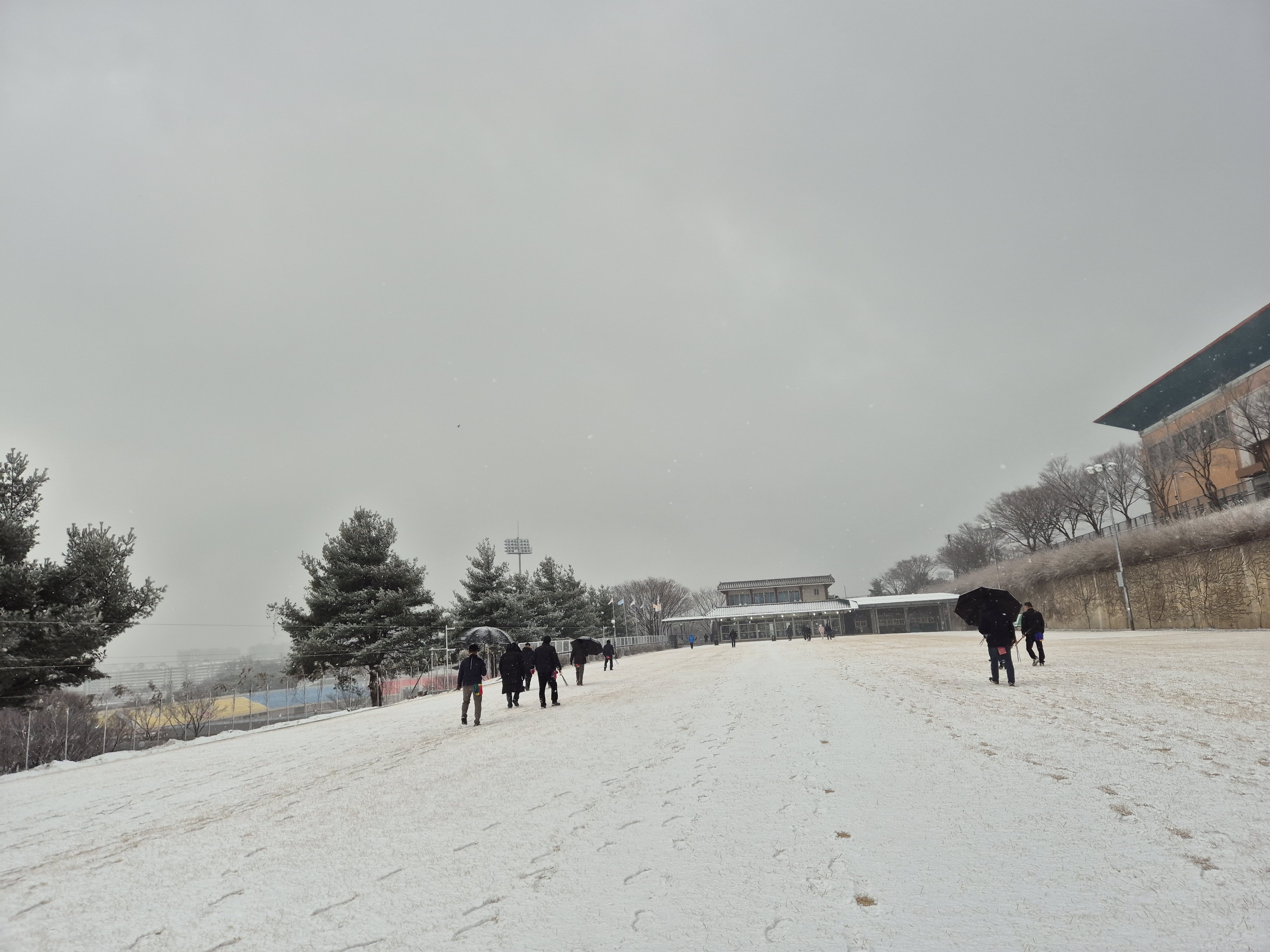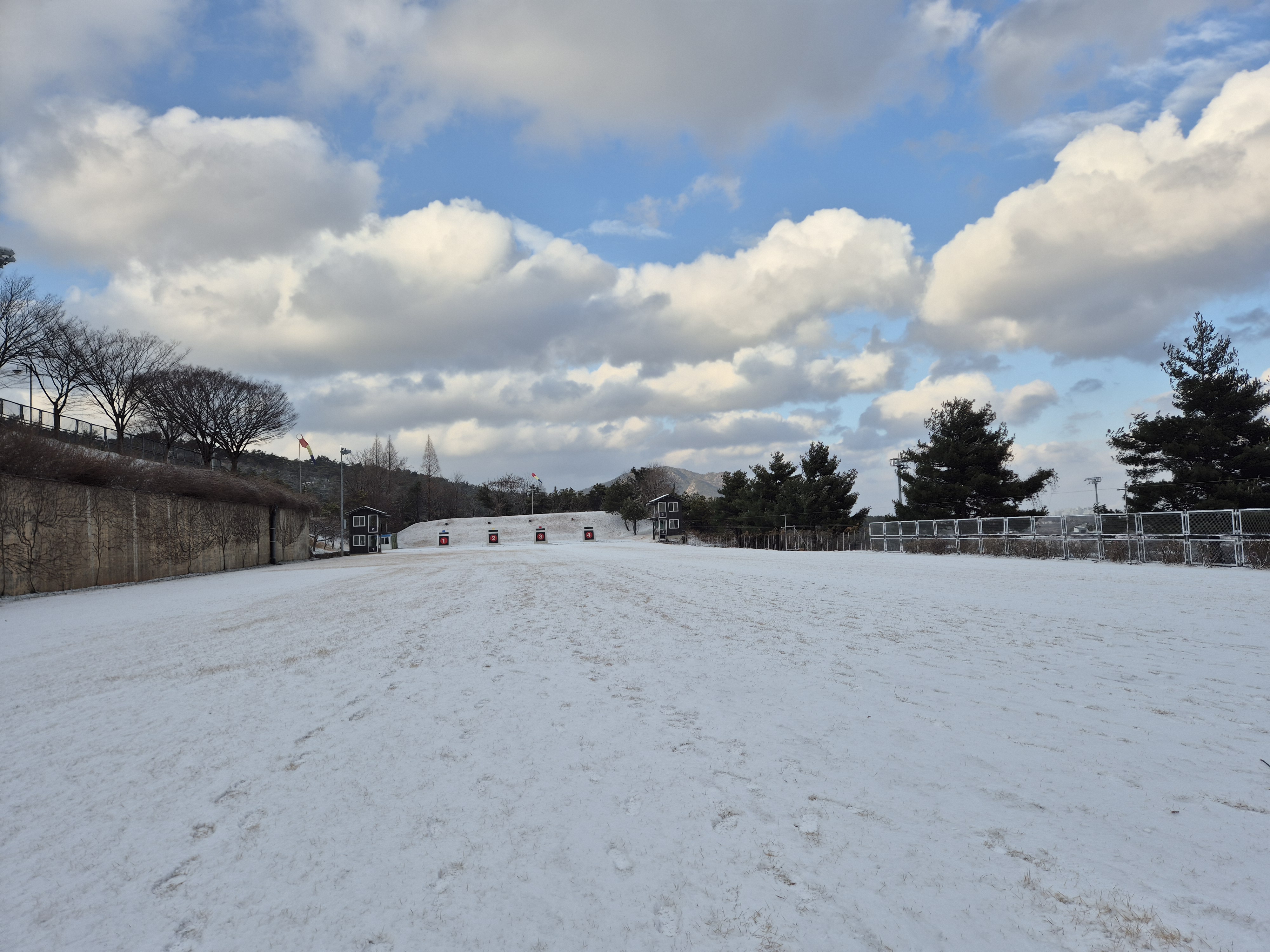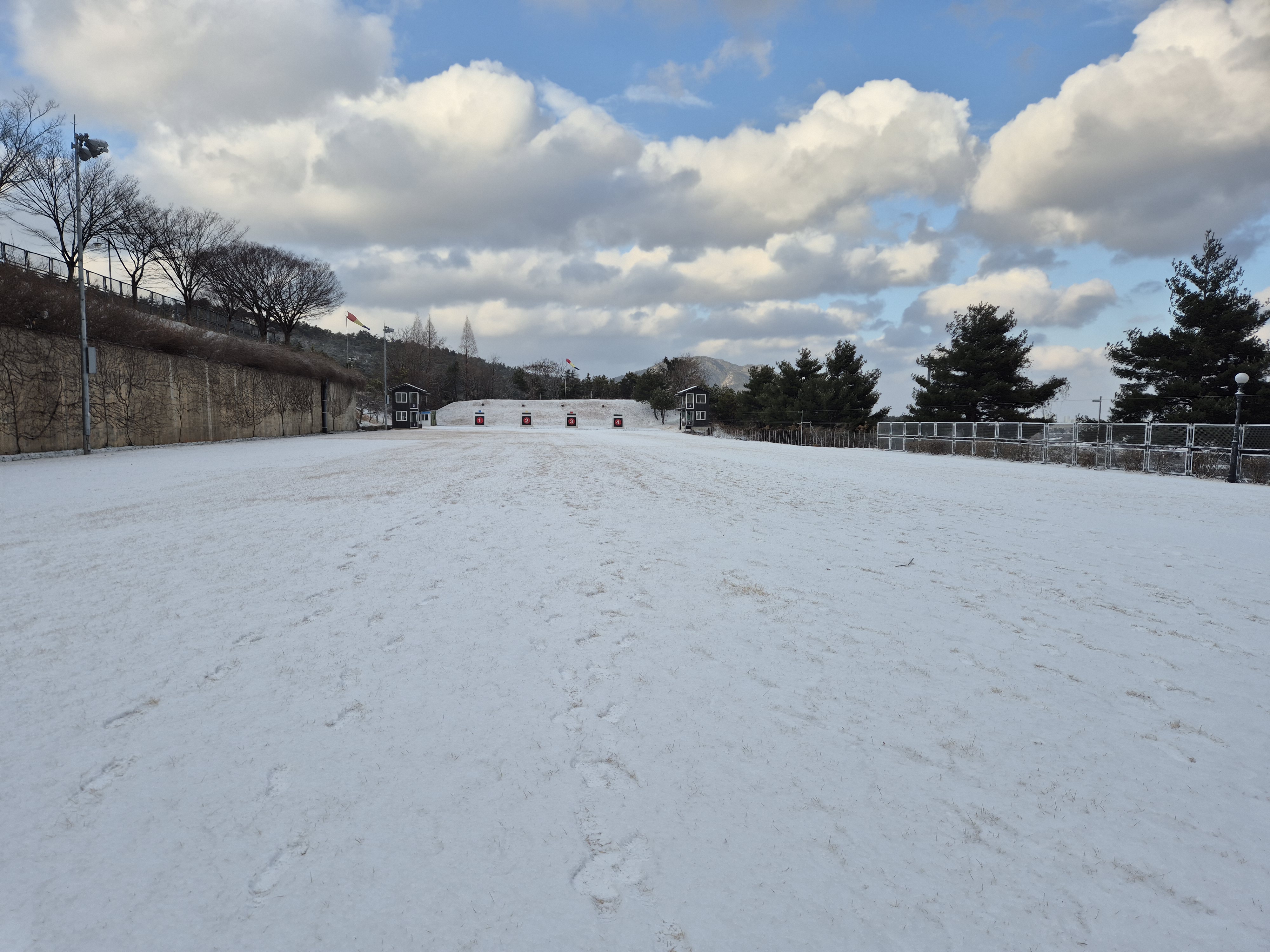 시야를 가릴정도로 눈이 쏟아내리며 멀리 과녁이 보이질 않을 정도로 내린다.