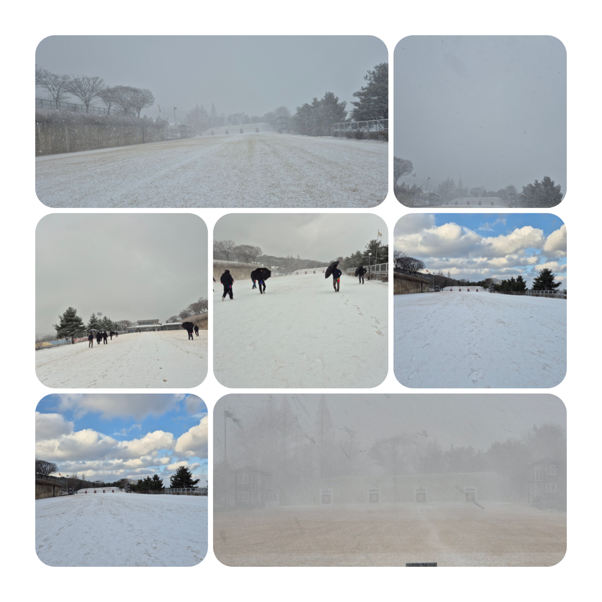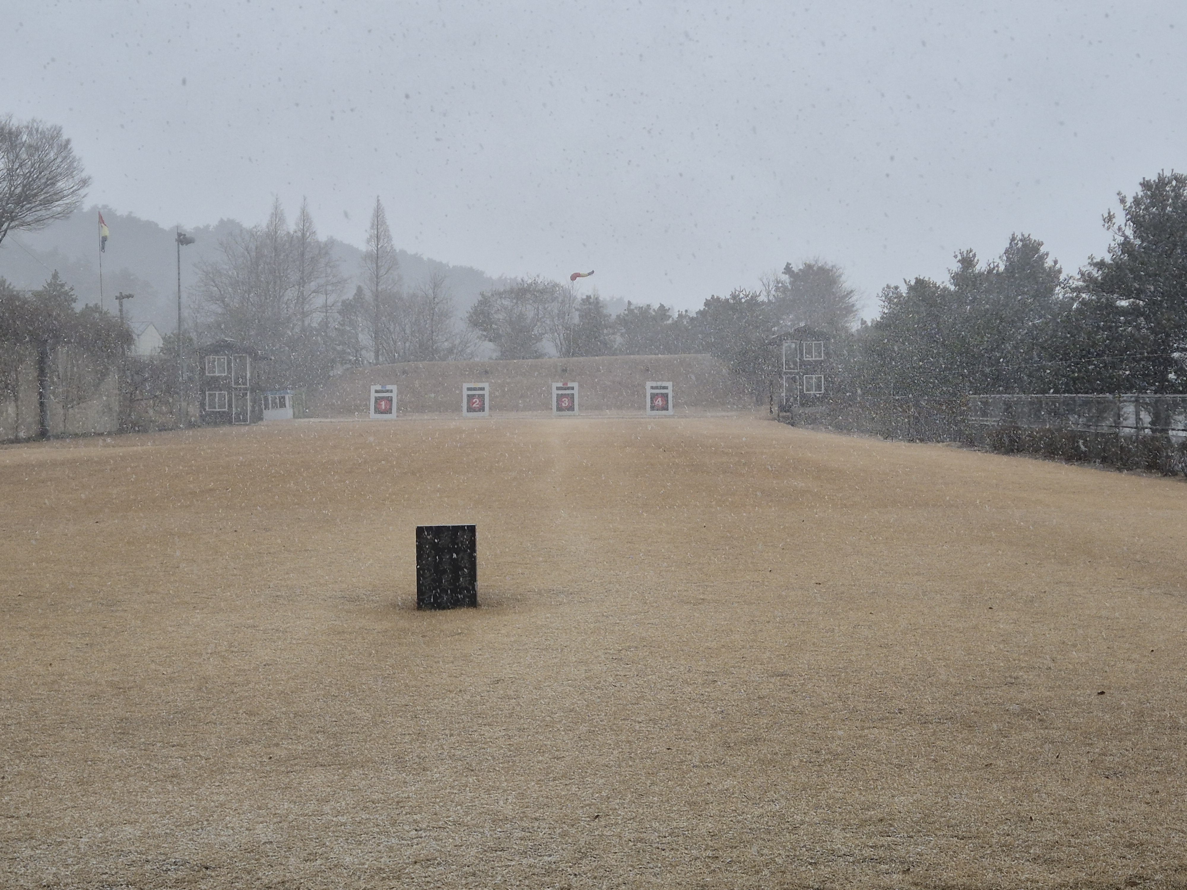 시야를 가릴정도로 눈이 쏟아내리며 멀리 과녁이 보이질 않을 정도로 내린다.