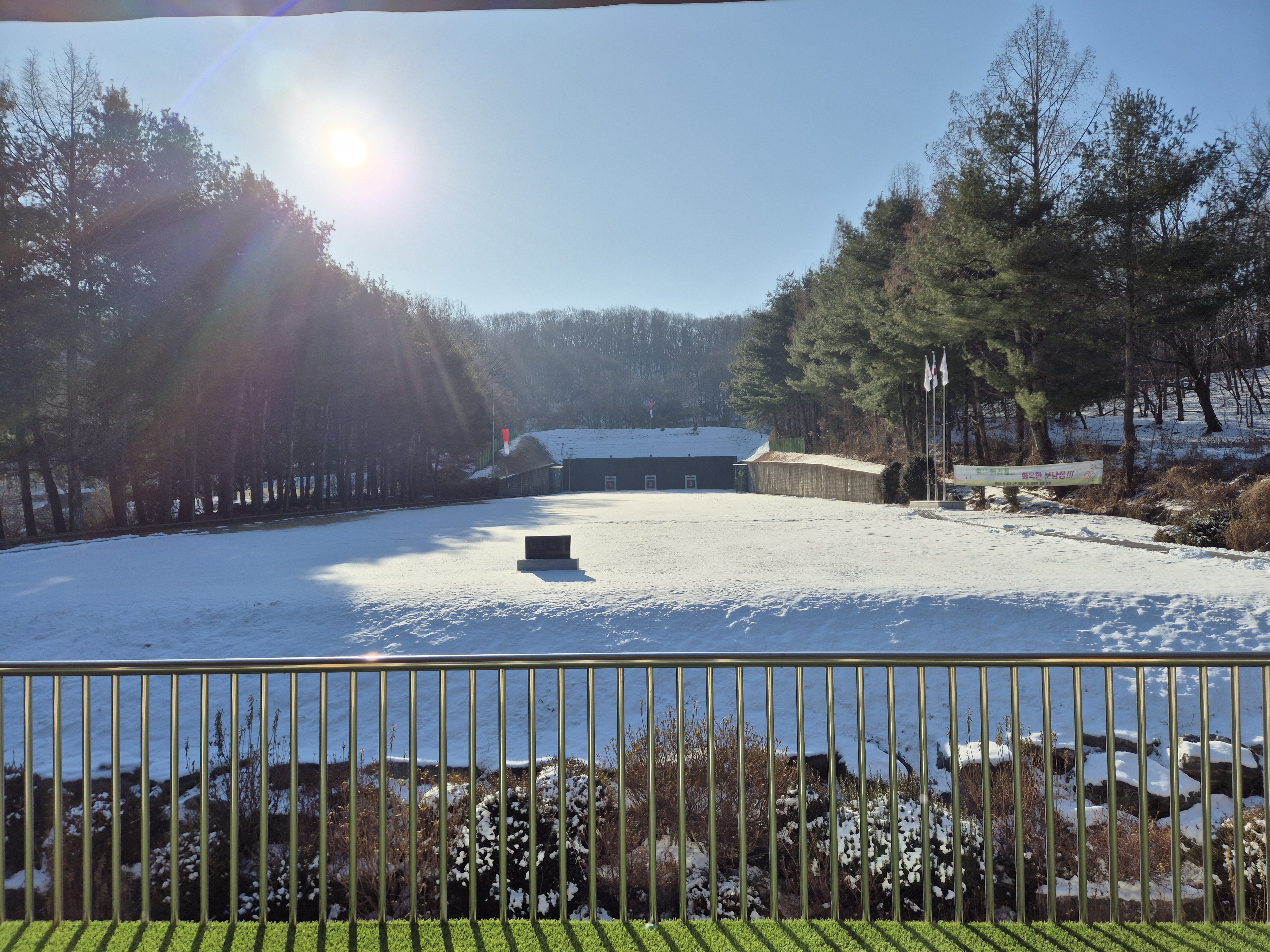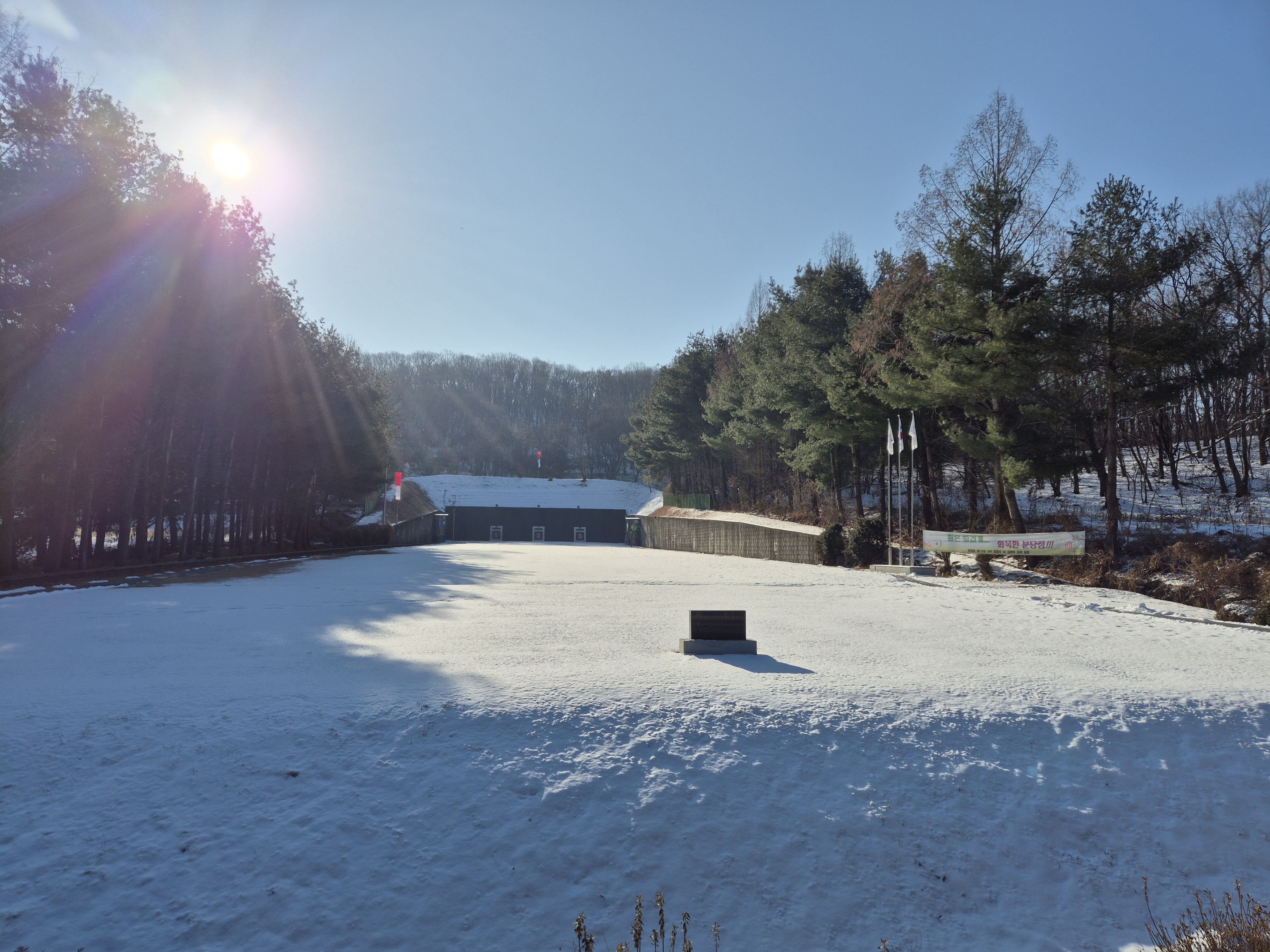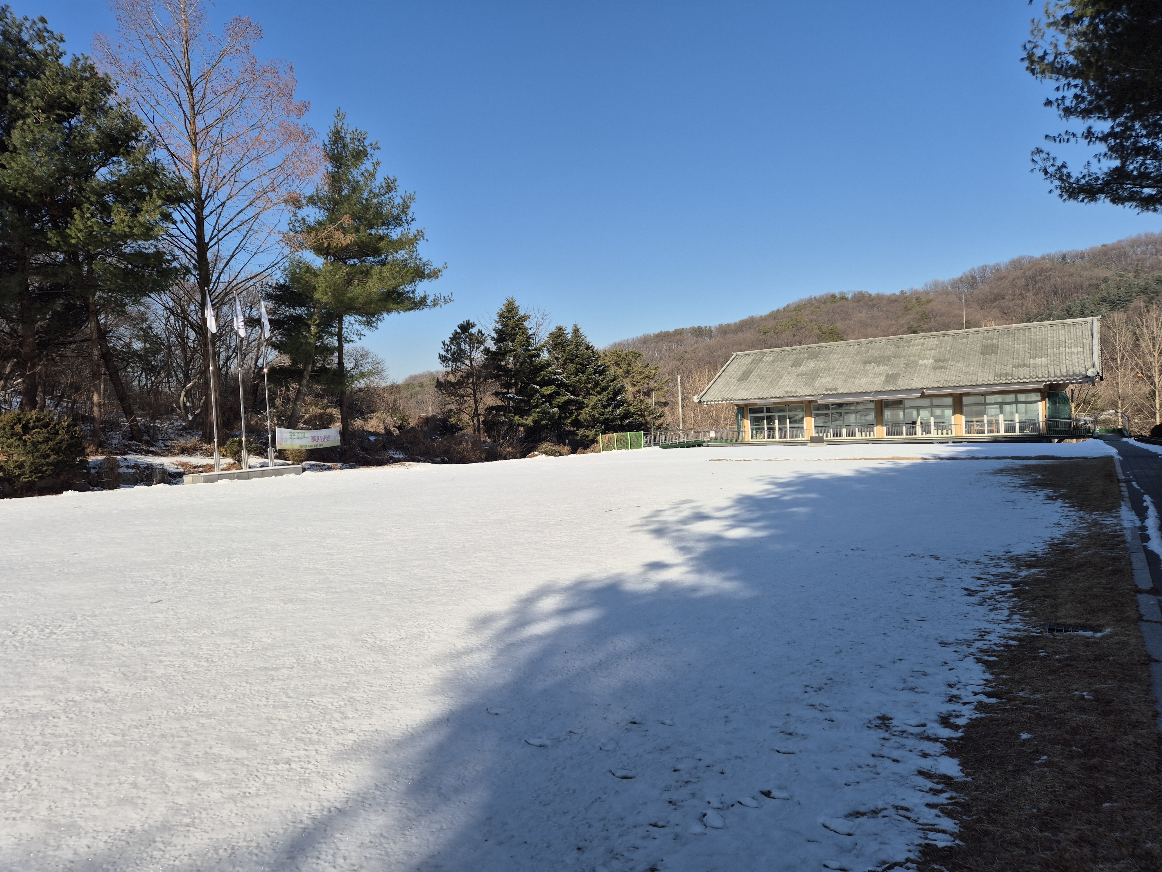 엊그제 내린눈이 뒤덮힌 활터는 온통 백색의 세상이다.