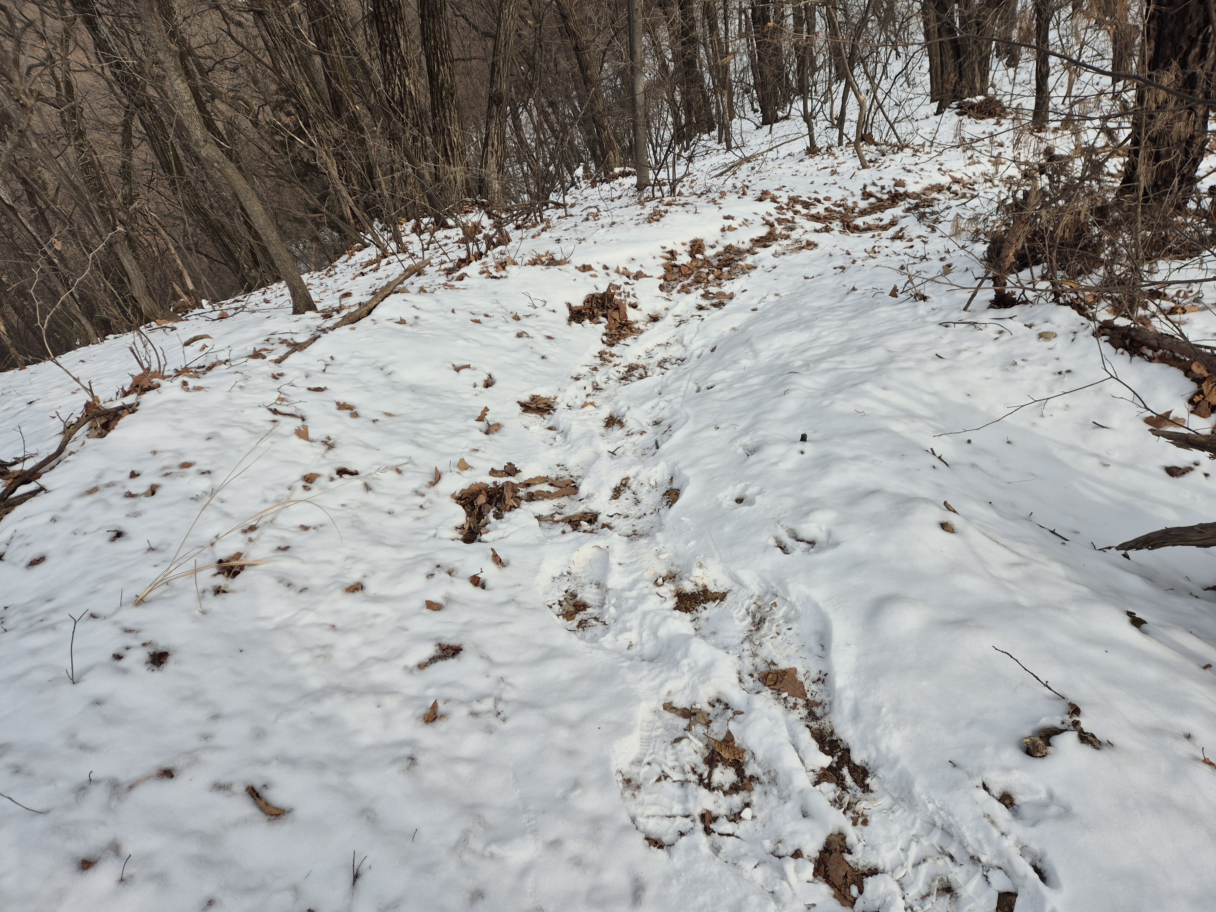 이곳은 음지라 며칠전 내린눈이 거의 그대로가 대지를 뒤덮고있다.