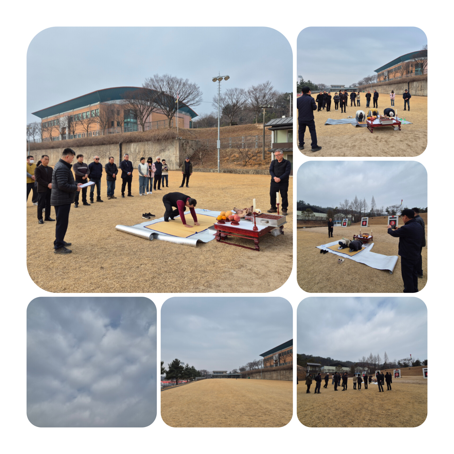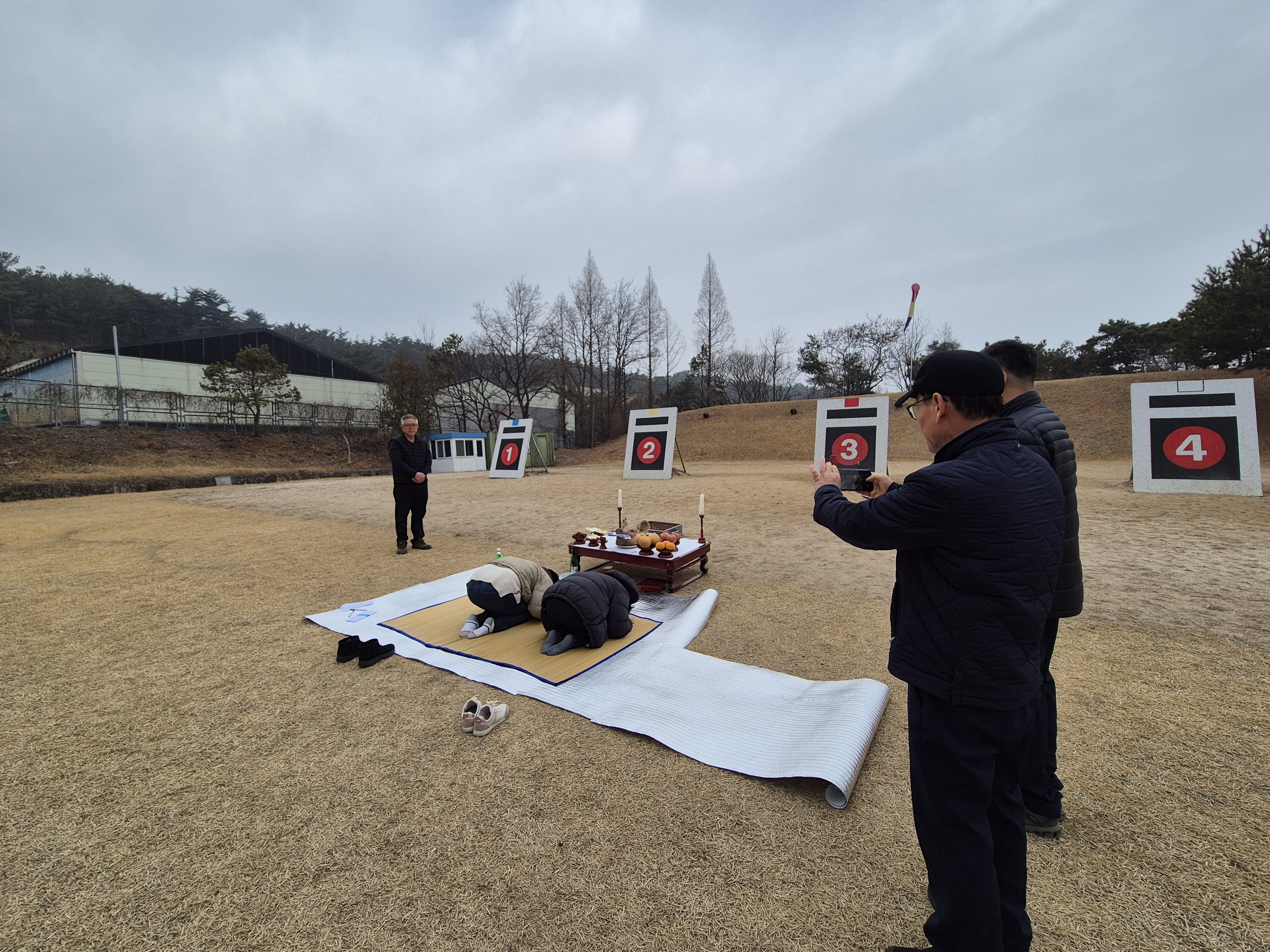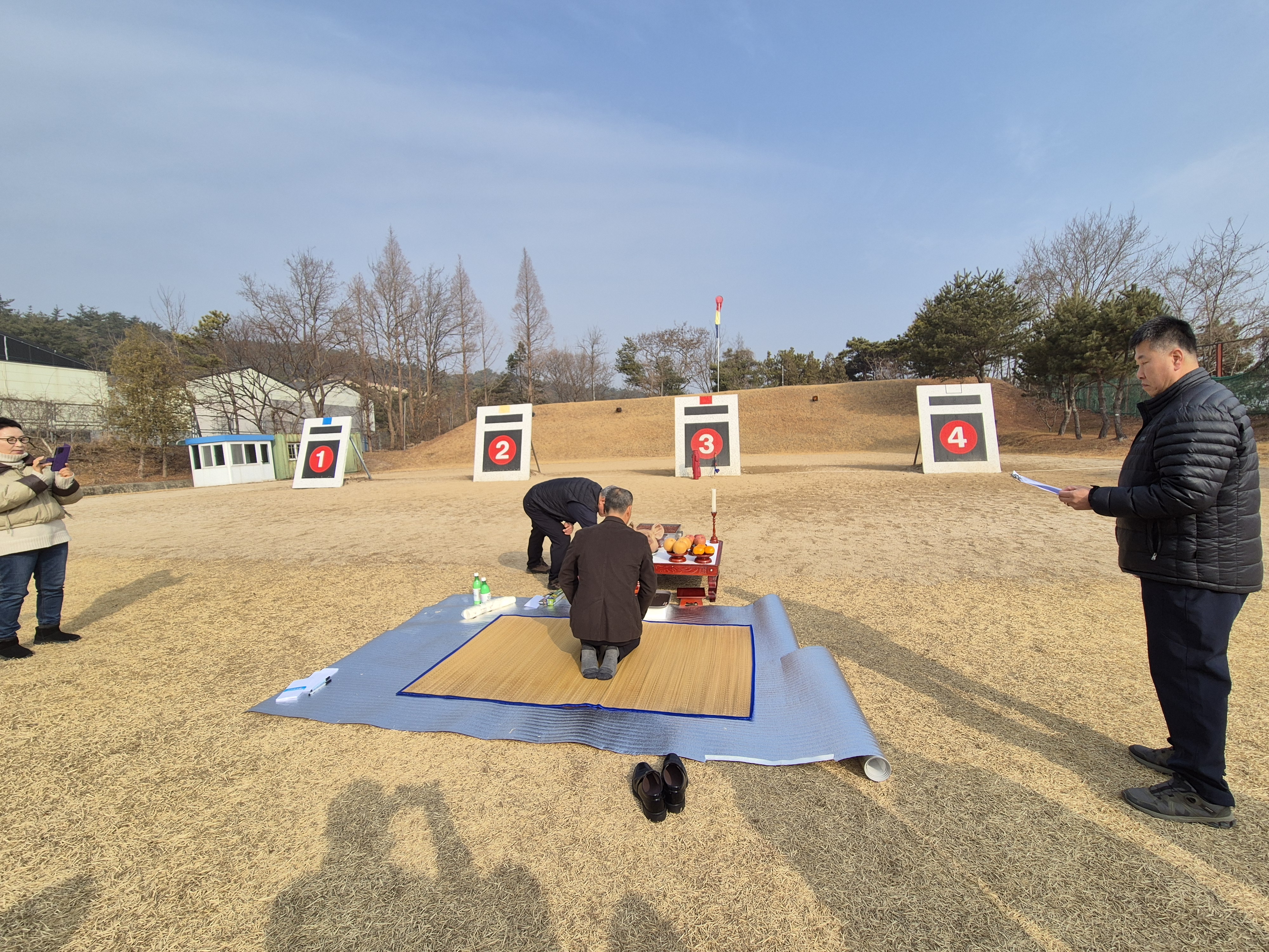 과녁앞에 제사상을 차리고는 기원제를 올리고는,원하는 사우들이