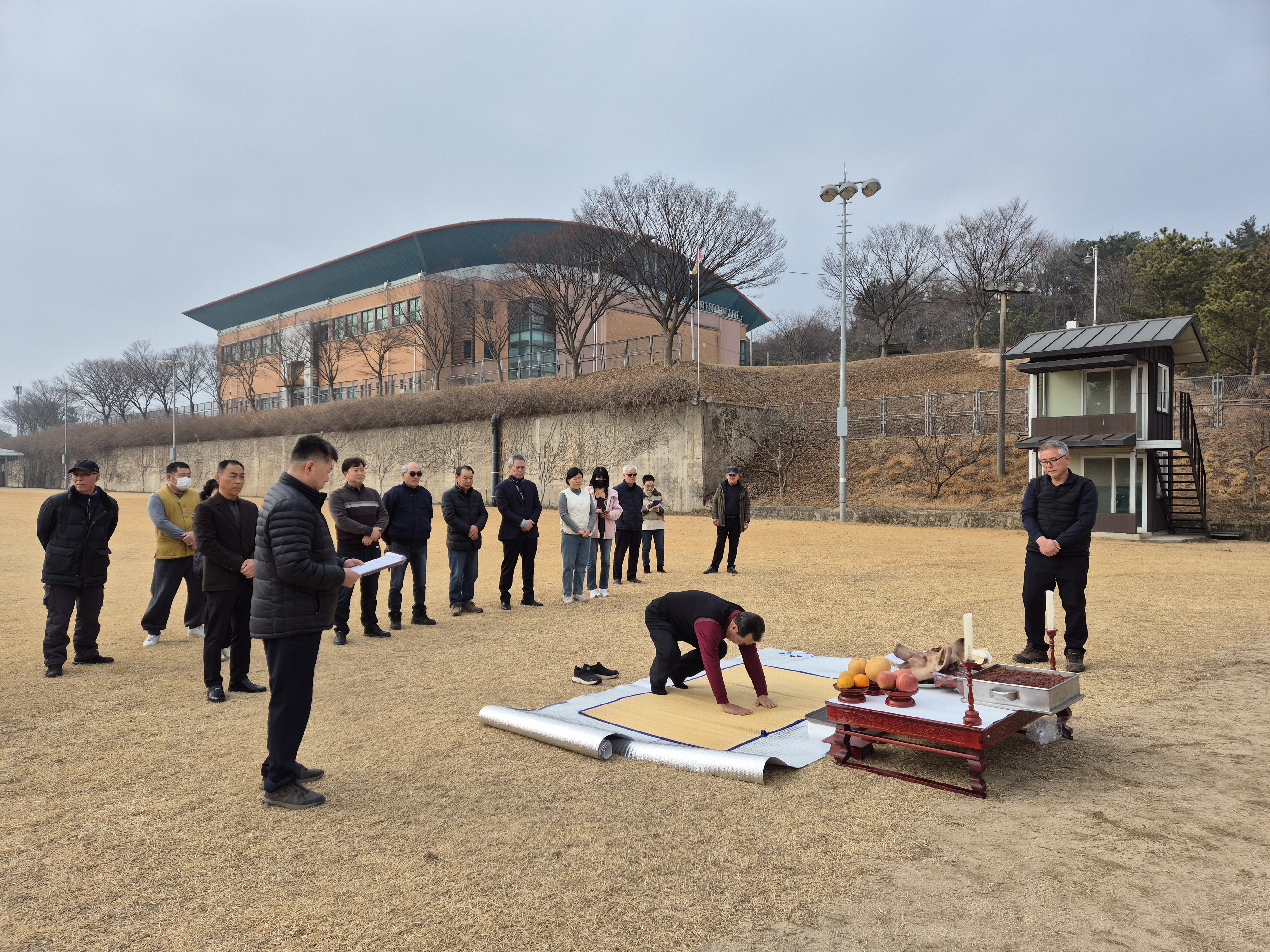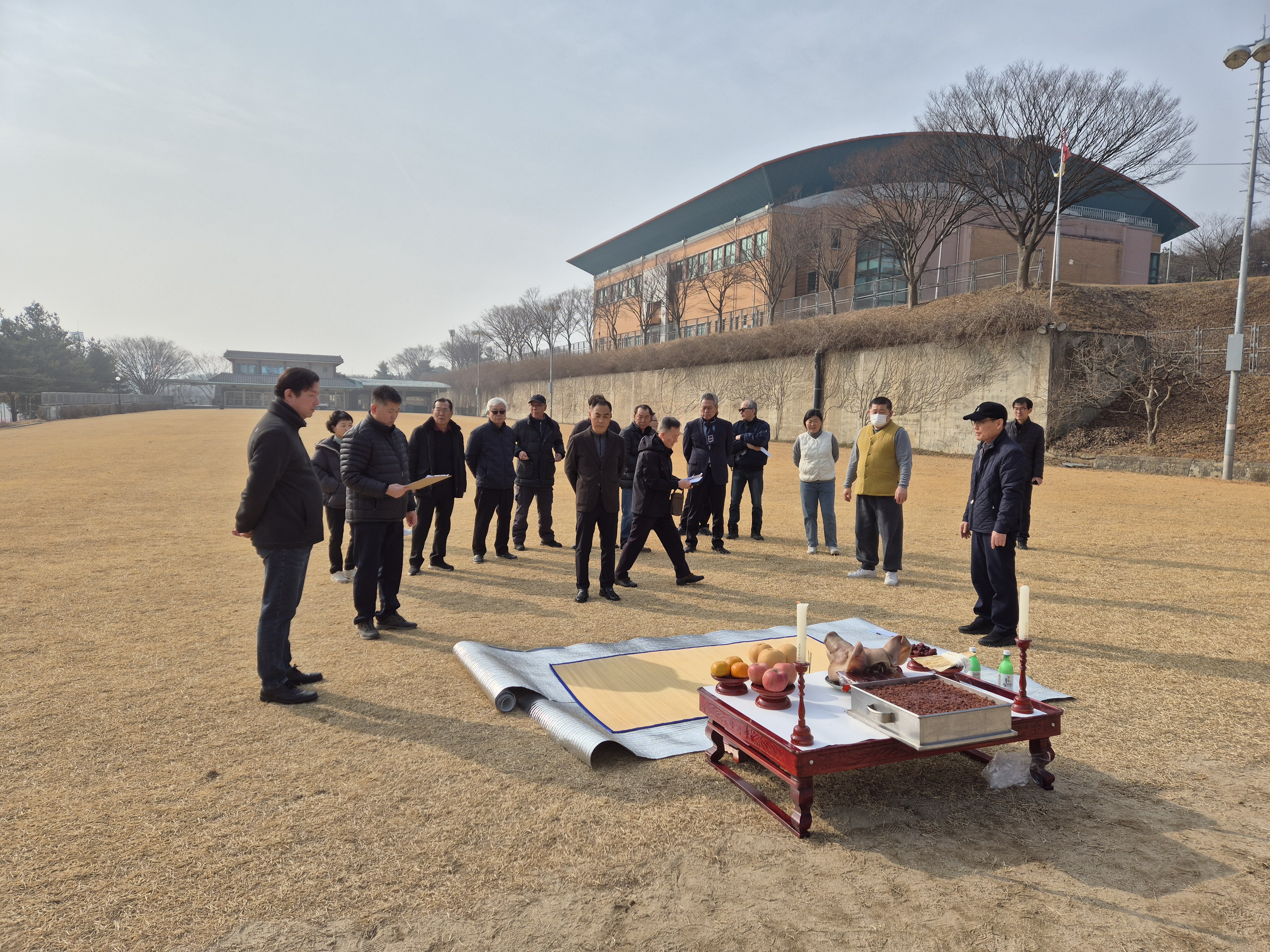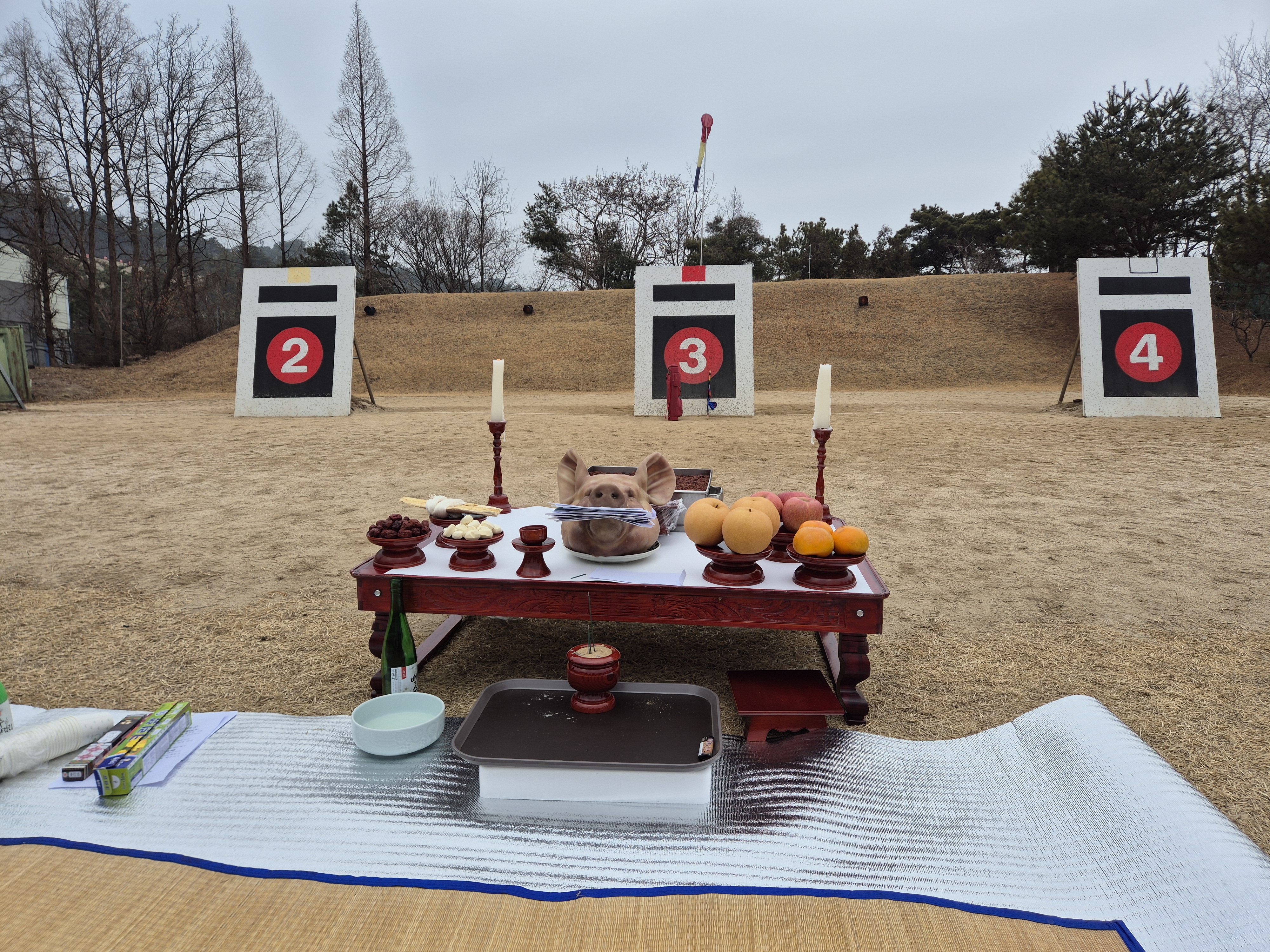 과녁앞에 제사상을 차리고는 기원제를 올리고는,원하는 사우들이
