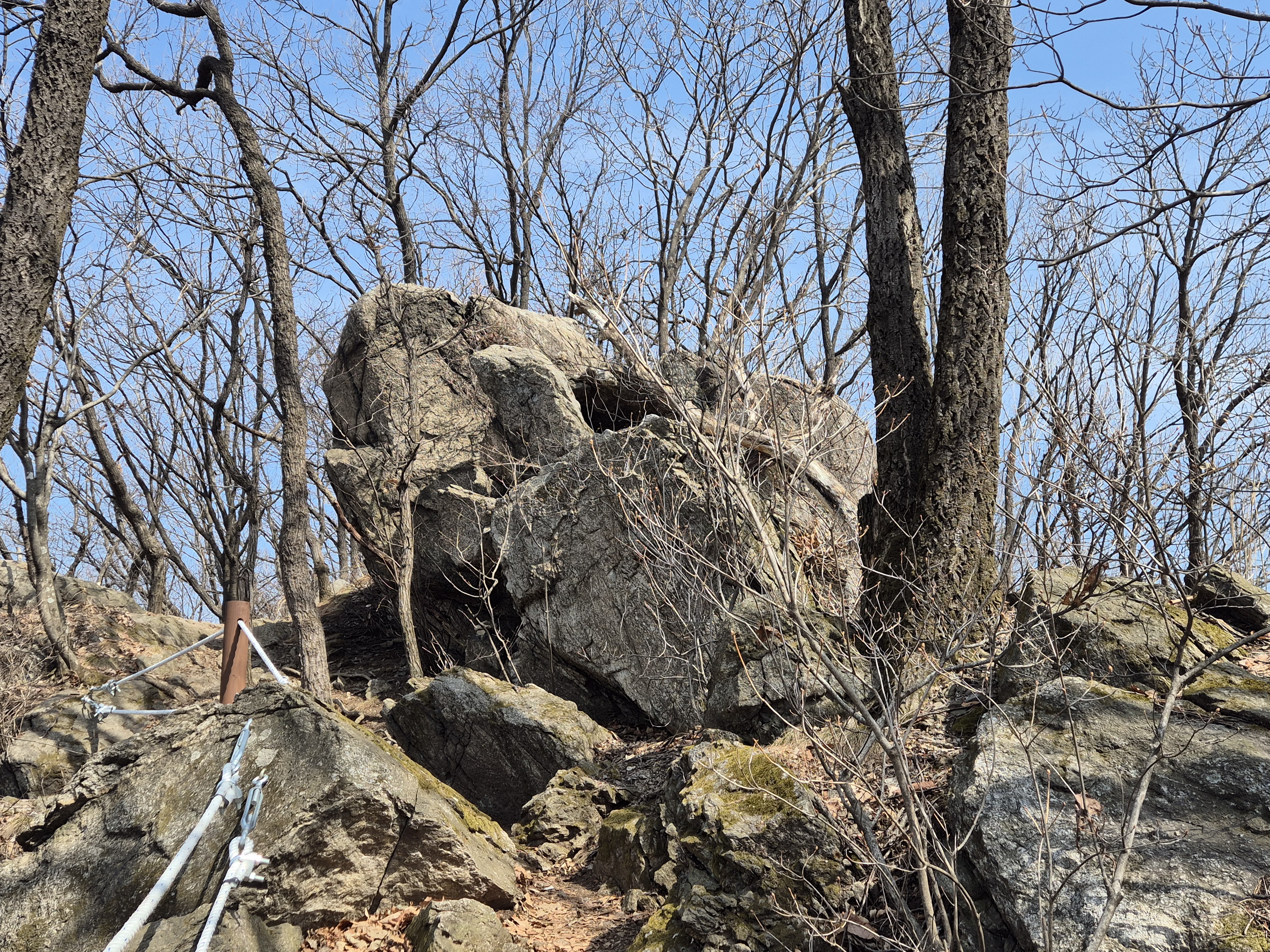 부근에서는 높은 편이라 정상부가 돌출되어있다.
