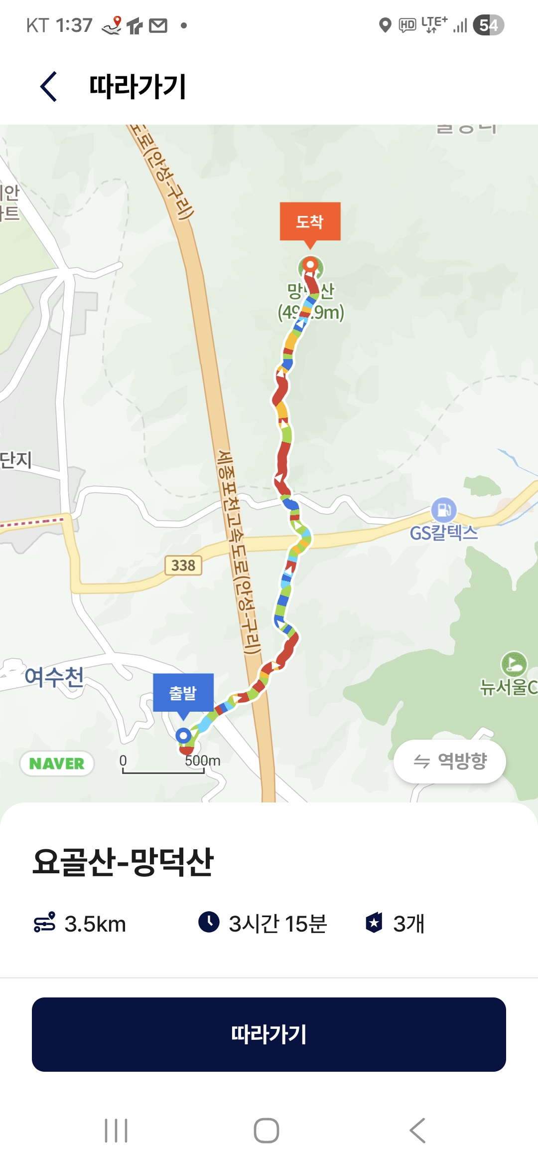 편도 3.5키로의 거리이니 왕복 7키로의 길을 걸었는데, 등산앱 2개는