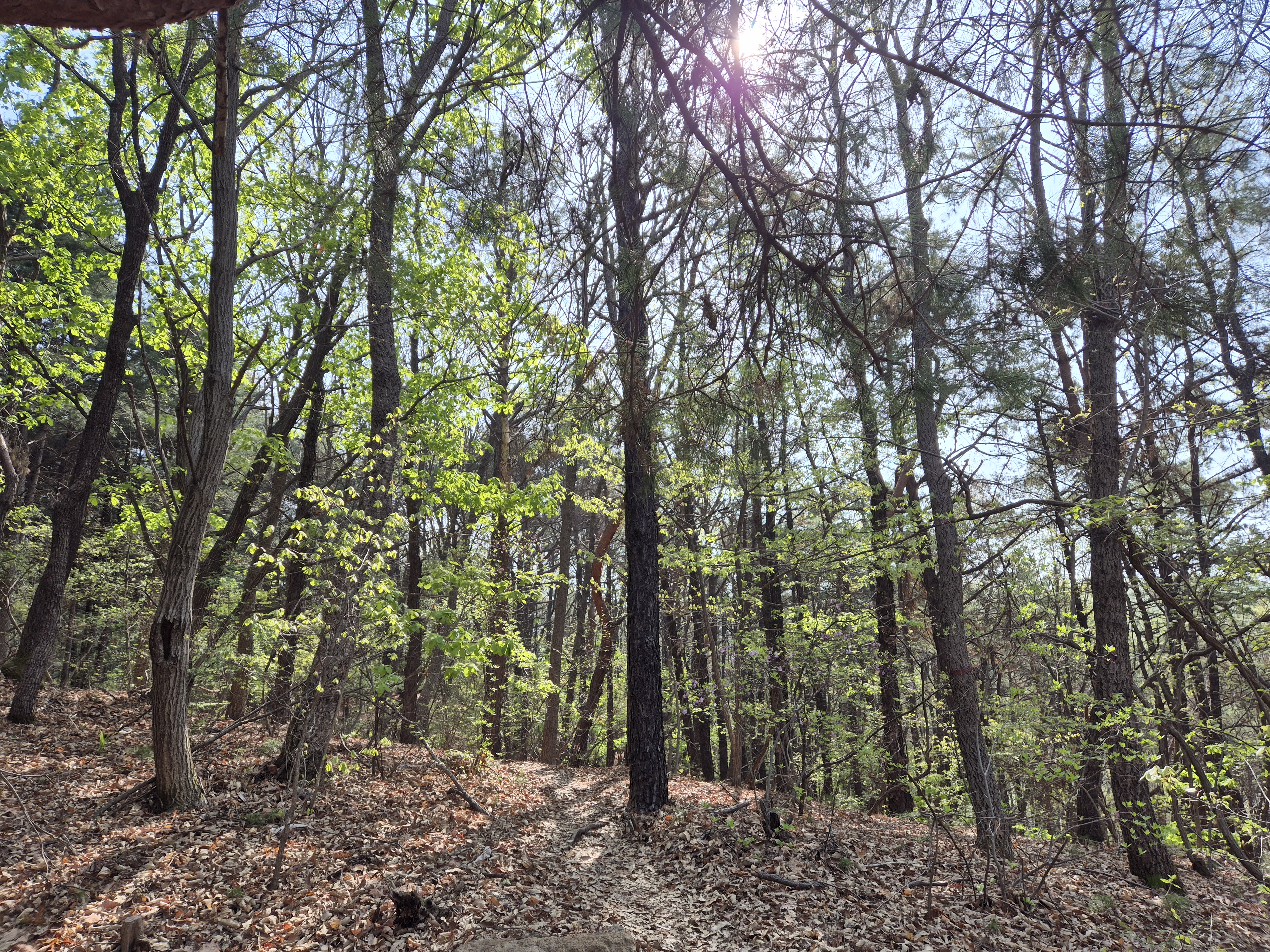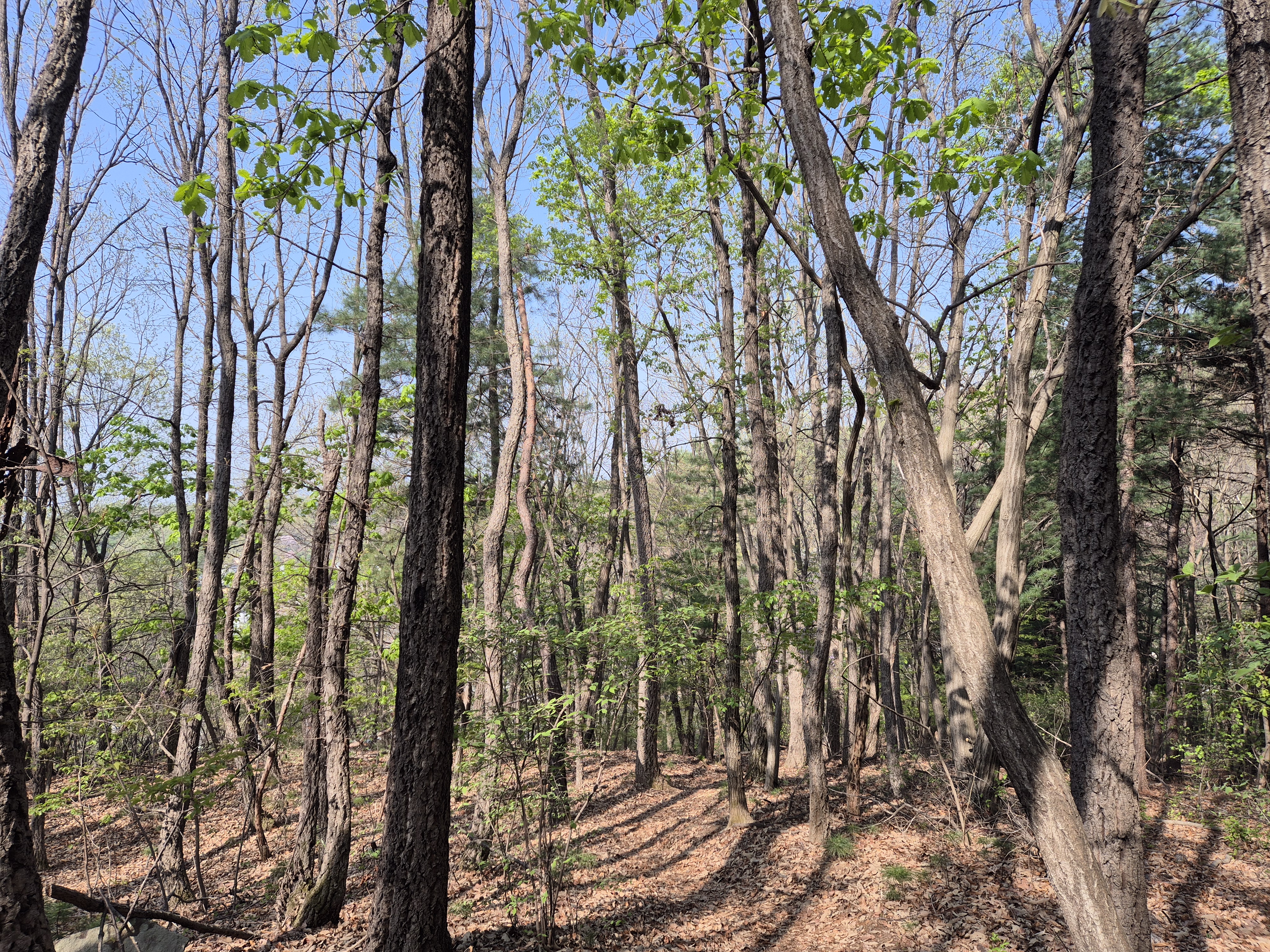 다시 숲사이로 영장산이 바라보이는 지점에서 방향을 틀어 원점으로 회귀한다.