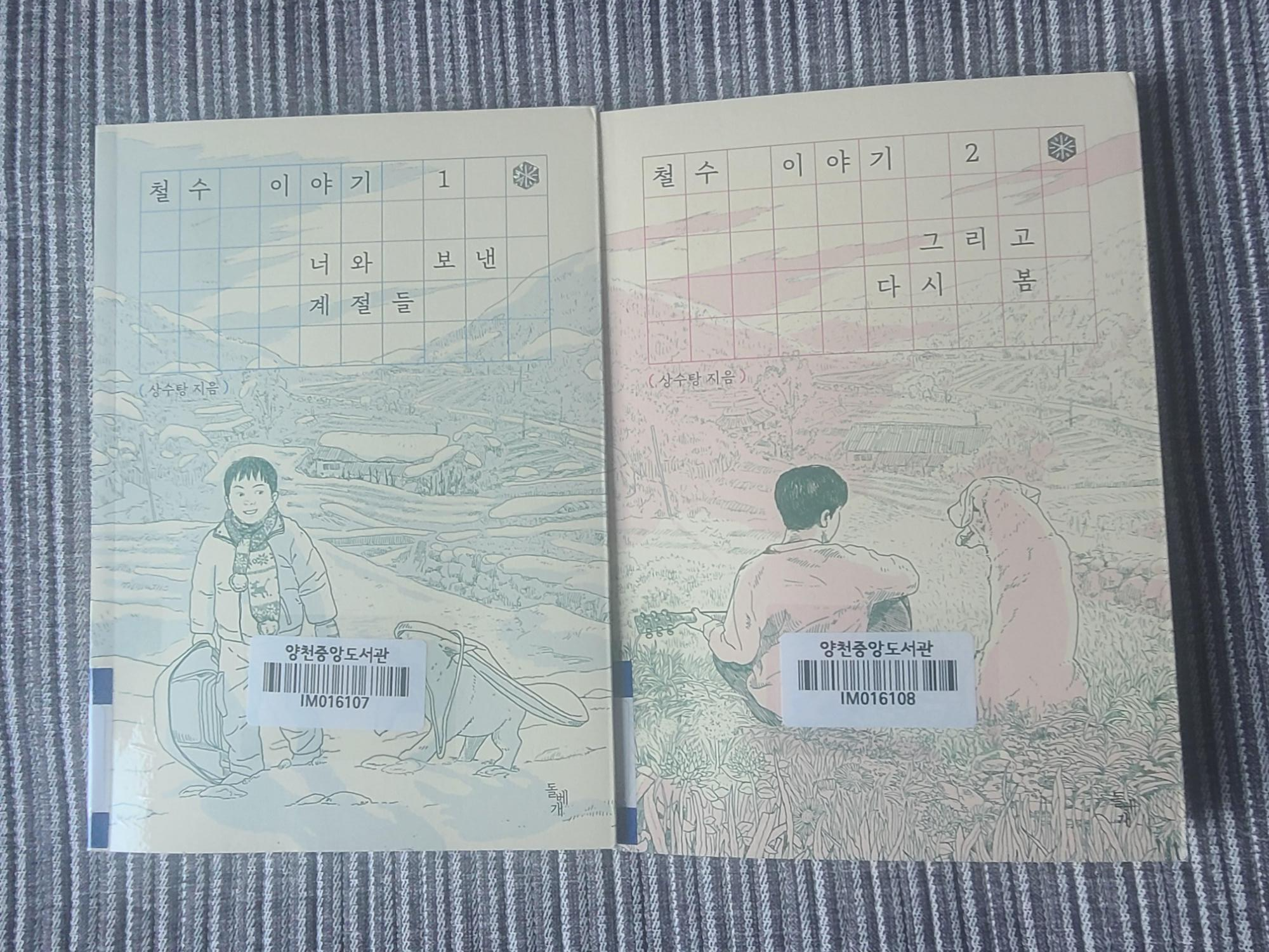 철수이야기 1,2 철수이야기1 너와보낸 계절들. 상수탕지음 철수이야기2 그리고 다시 봄. 어제저녁 두권의 만화를 읽고 취침. 오전에 활터로 향해 오전에 활을 내고는 사두가 사주는 짜장면을 먹고는 한순의 더내고 귀가. 독서 2021.04.11