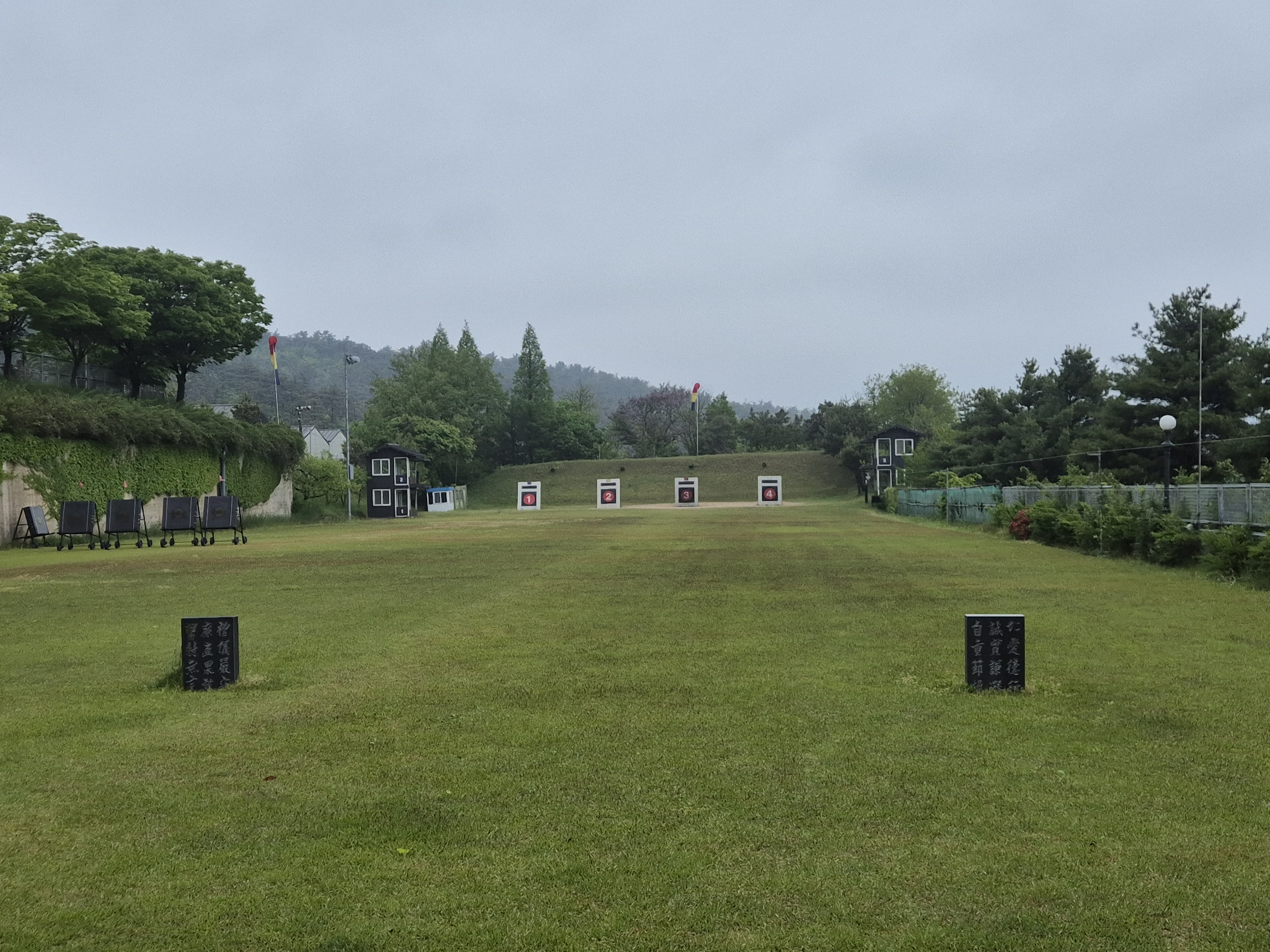 전국에 380여개의 국궁장이 있고,각 국궁장마다 **정이라는 이름이 있다.정내의 회원들의 친선을 도모하고 실력을 배양키위해 매월 자체경기를갖는데,이를 자정대회라한다.오늘은 소속된 활터의 월례회겸 자정대회가 있는 날이니 점심후활터를 오른다.간략하게 회의를 마치고는 몇개팀으로 편을 갈라 친선 자정대회를 갖는다.오월인데도 어제와 오늘 오전까지 비가내려 날씨가 서늘한 편이고 조금 바람이 불어온다.각팀별로 5발씩 세순경기를 치러 팀별순위와 더불어 개인시수를 평가하여 시상한다.첫순에 2발,두번째순에 3발, 세번째에 1발을 관중하여 도합6발로 경기를 마친다.생각보다는 쉽지않은 관중율이다.1발차로 단체팀 성적이 2위로 되었고,개인시수는 노년부 3위로 되는데집행부에서 노년부로 체크하지않고 장년부가되어 시상에서 제외된다..