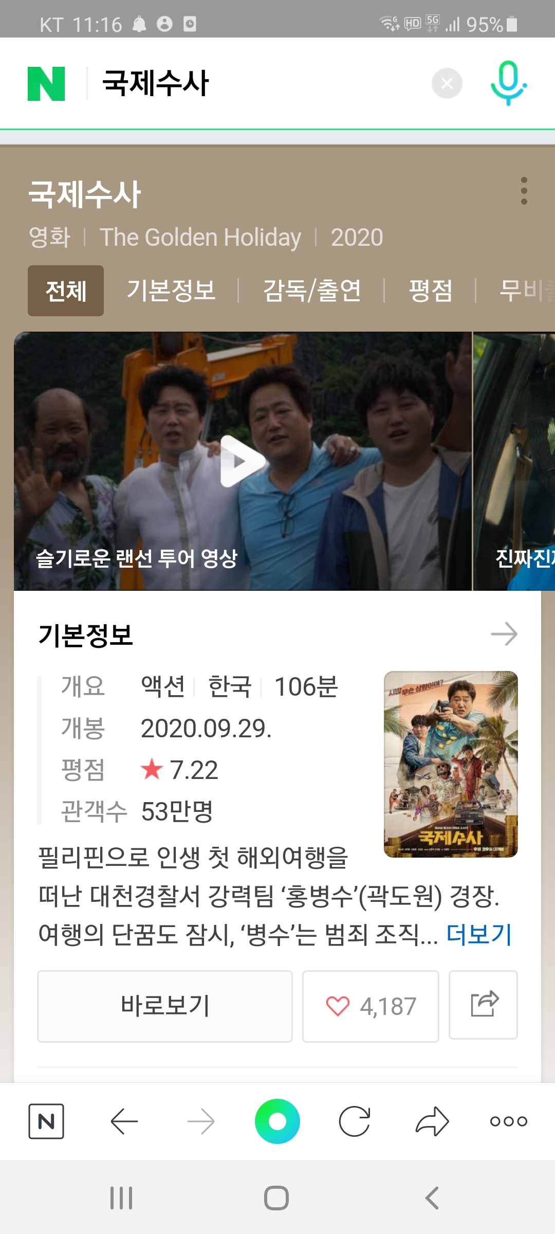 국제수사 혹시하고 봤다가 역시하고 실망하는 방화. 오랫만에 방화를 재미삼아 보자싶어 관람하였다가 역시였던... https://coupa.ng/bOA3FO 올가니카 순수 아몬드두유 COUPANG www.coupang.com https://coupa.ng/bOA3JG 태광선식 국산서리태로 더욱 고소해진 귀리쉐이크 COUPANG www.coupang.com “파트너스 활동을 통해 일정액의 수수료를 제공받을 수 있음" 영화 2020.12.29