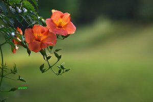 여름의 꽃 능소화가 여기저기 피어나기 시작했다. 능수화라고도 부르며 옛날 양반집에서 많이 심어 양반꽃이라고도 한다. 뜨거운 여름날 피어나는 이꽃을 보노라면 신기하기도하고 한편으로는 애처로움은 느끼기도한다. 예전 직장생활을 할 때 건물의 옥상을 정원화하는 사업을 시행하였는데 건물 한편에 간편하게 쉼터를 만들고 능소화를 심었는데, 몇포기 심지않은 능소화가 이듬해 여름에 붉은색꽃을 피우며 자라났고 줄기가 기둥을 타고 올라 쉼터를 뒤덮어 그늘을 만들어 놓아 훌륭한 쉼터가 되었고,모두가 휴가를 떠난 뜨거운 여름날저녁 해그름에 바람부는 옥상에서 술한잔을 마시던 기억이 새롭다. 요즈음은 도심의 가로수에도 능소화를 심은 곳이 많이 눈에 띈다. 꽃말은 여성.명예.이름을 날림이라고 하는 능소화에는 슬픈 이야기가 전해온다...