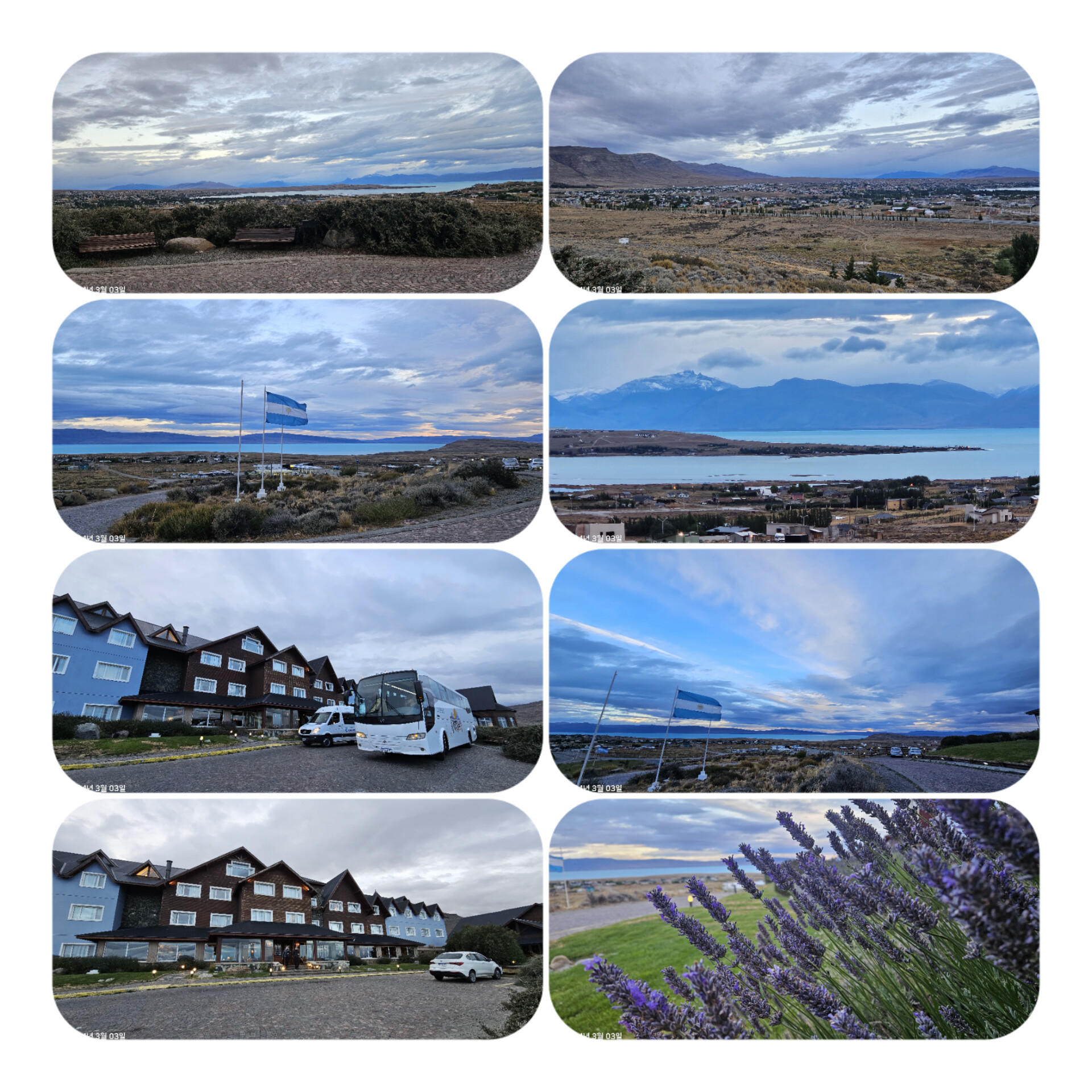 Hotel Alto Calafate에서 숙면을 취하고 한식도시락을 챙긴후 3시간거리의 엘찰튼을 향한다. 세계에서 8번째로 큰 땅덩어리를 가진나라답게 달려도 고원지대의 연속이다. 그런데도 사유지로 주인이 있다고하는데 그 이용도가 궁금해 물어보니 가축사육용도로 쓴다고한다. 라 레오나르라는 지역의 휴게소에 잠시 들른다. 땅덩어리가 넓어 우편물등을 항공으로 전달키위해 지붕위에 글자를 써서 착지를 쉽게 인식하고 전달하였다고한다. 만년설이 녹아서인지 강물은 우렁차게 소릴내며 흐른다. 다시 차를 달려 도착한 엘찰튼. 예전에 연기가 피어올라 접근하지 못하고 붙여진 지명이라하며 이곳에서 피츠로이 트레킹이 시작된다. 전체구간은 20키로가 넘어 카프리호수까지 왕복8키로를 걷기로한다. 가을로 접어드는 계절이고 비가내리지않아 ..