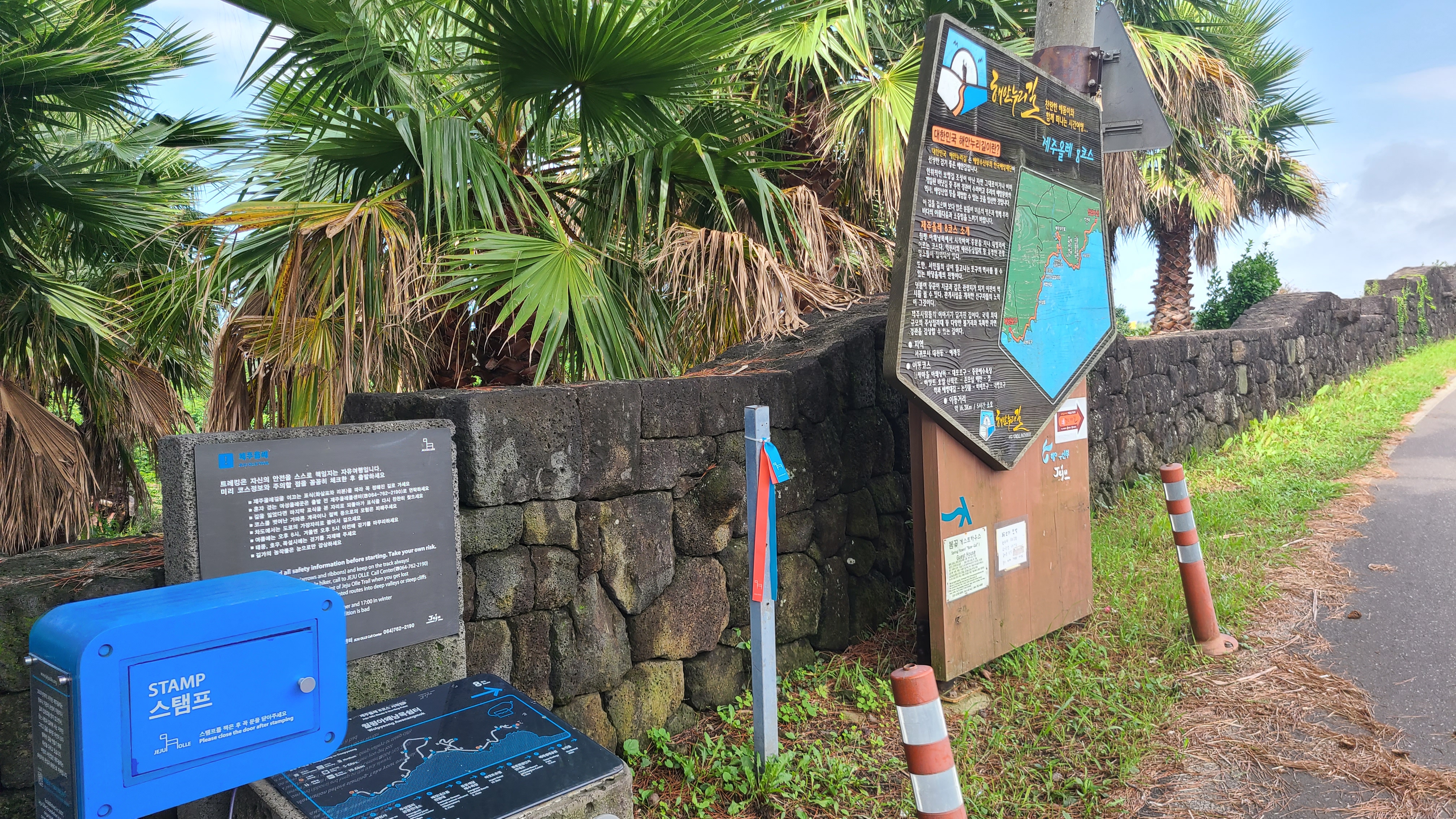 딸네식구가 떠나고 부부가 다시 숙소로 돌아와 죽은듯이 잠을 자고는 올레길을 걷기로한다. 15개월만에 다시 걸어보는 올레길이다. 지난번 종료한 월평포구를 찾아 걷기전 식사를 하려는데 마땅하게 식사를 할 곳을 찾기가 힘들다. 몇바퀴를 돌아 중문인근에서 해장국으로 아침을 먹고는 월평포구를 찾아 주차를 하고 걷다보니 지난번 종료한 지점에서 2키로정도 전부터 걸은것을 알았다. 날씨는 무덥고 뜨거운 태양이 내리쬐는 여름막판의 무더운 날이다. 월평포구아래낭목쉼터를 출발하여 약천사를 지나고 대포포구,주상절리까지는 무난하게걸었다. 그러나 그곳을 지나 색달해수욕장을 지나 중문을 돌아가는 길은 더위에 날씨에 태양에 지치고 힘이든다. 그나마 대왕장수천생태공원에 조성해 놓은 탁족장에서 시원한 물에 발을 담그고 물속에 몸을 담궜..