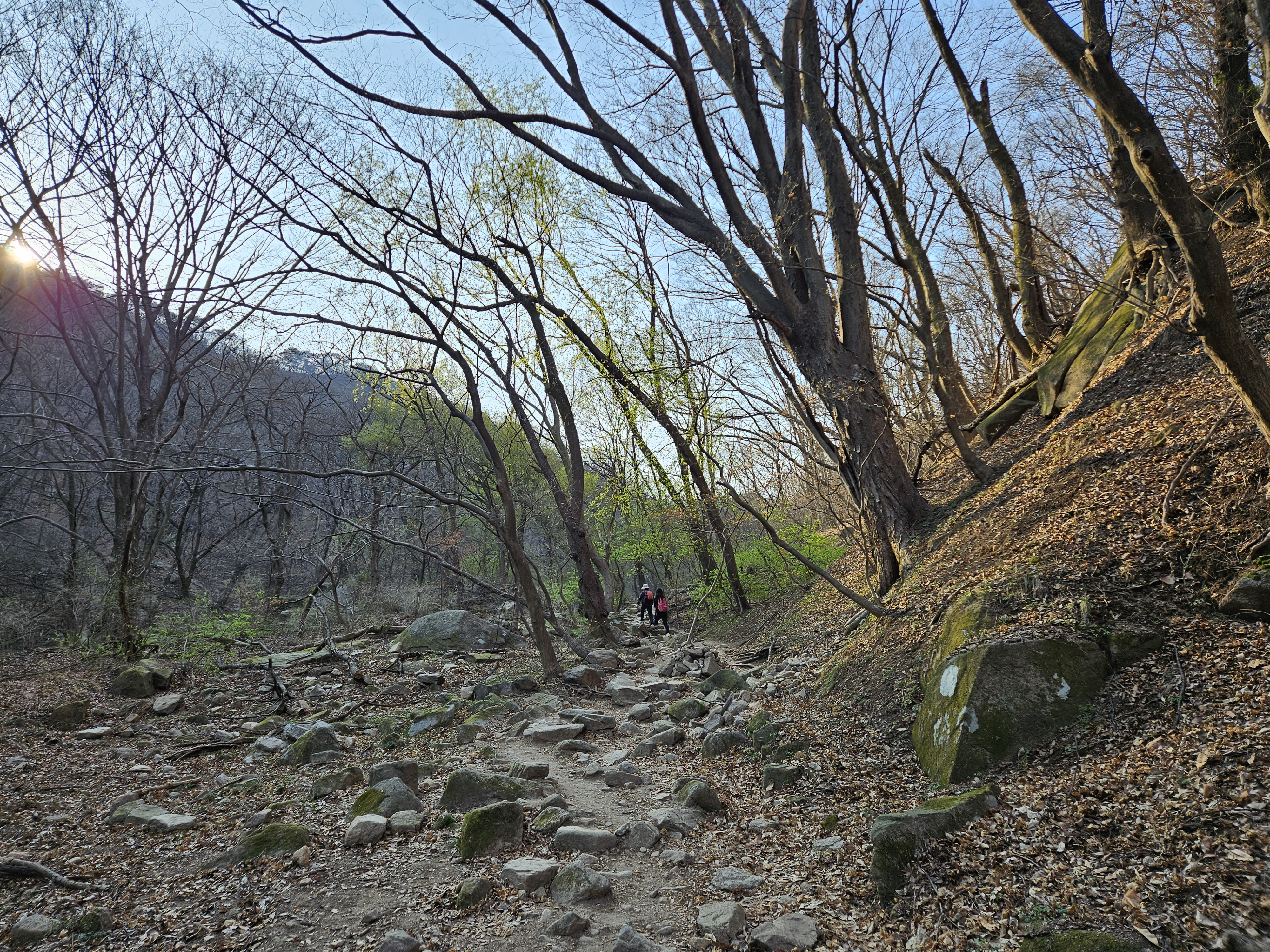 1.2023.04.16(일) 10:50-14:50(4.00hr) 맑음 2.doban,sm 3.산성주차장-인천둘레길-목상동솔밭-피고개-정상-계양산성-원점회귀,7.68km 4.딸과 함께 산행을 하려니 휴일날 움직여야한다. 평소 백수인지라 주말이나 휴일에는 산행을 하거나 잘 움직이려하지 않는다. 직장인만으로도 복잡하고 인파가 많은데 노는사람까지 합세 할 것은 없다는 논리이다. 늦잠을 자고 일어나는 딸을 픽업하여 산성입구로 달려가니 주차장이 거의 만차수준인 것을 간신히 비집고 파킹후 산행을 시작한다. 어제 비가 내린후 대기가 깨끗하여야 함에도 또다시 황사가 하늘을 덮고있는데 눈앞의 숲속은 깨끗하고 맑다. 산성으로 올라 바로 정상을 오르는 것은 계단길이라 힘이드니 묵상동솔밭으로 인천둘레길을 따라 걷는다. 사월의 ..