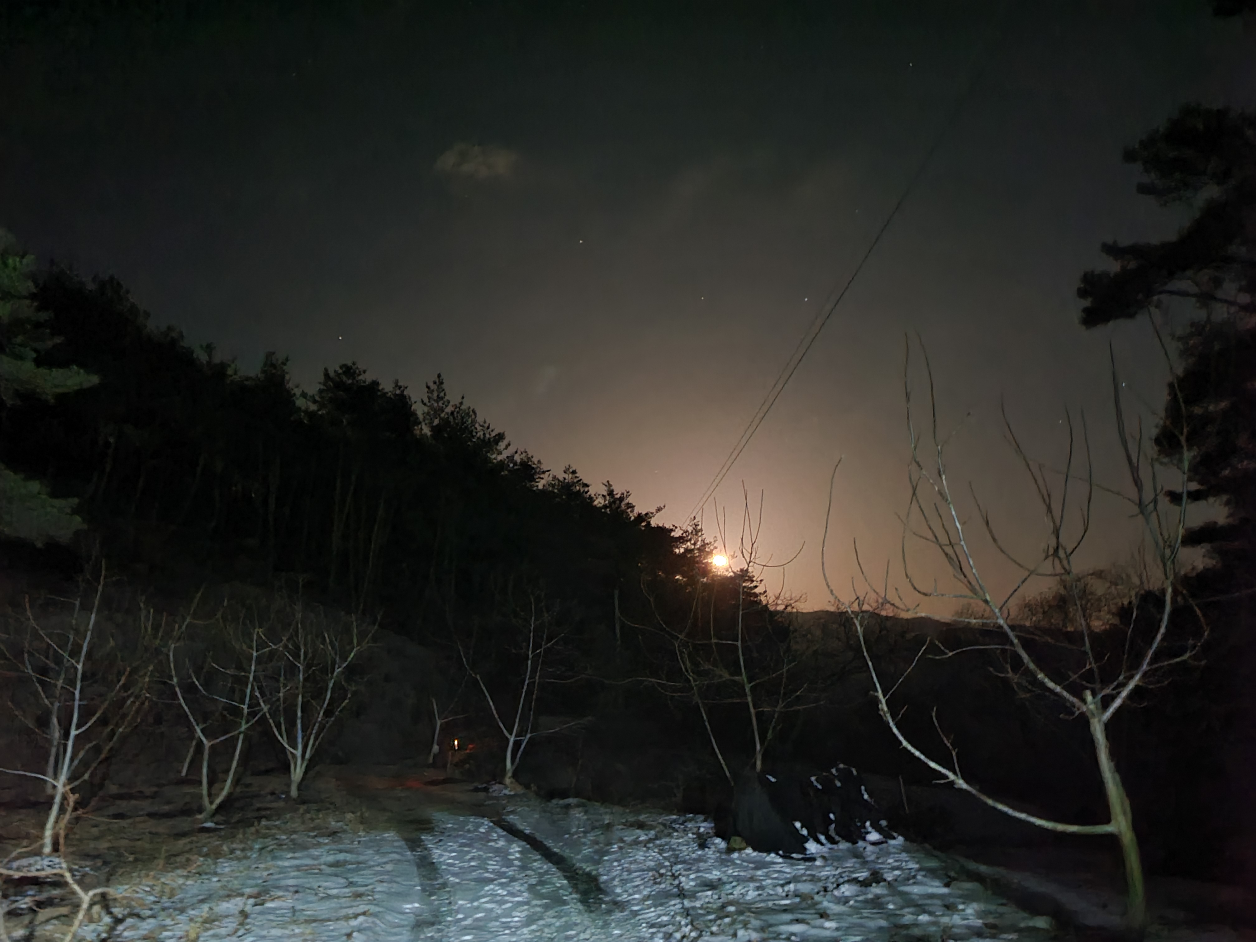 달을 소나무사이를 지나 하늘에 휘영청 밝게 떠오른다.