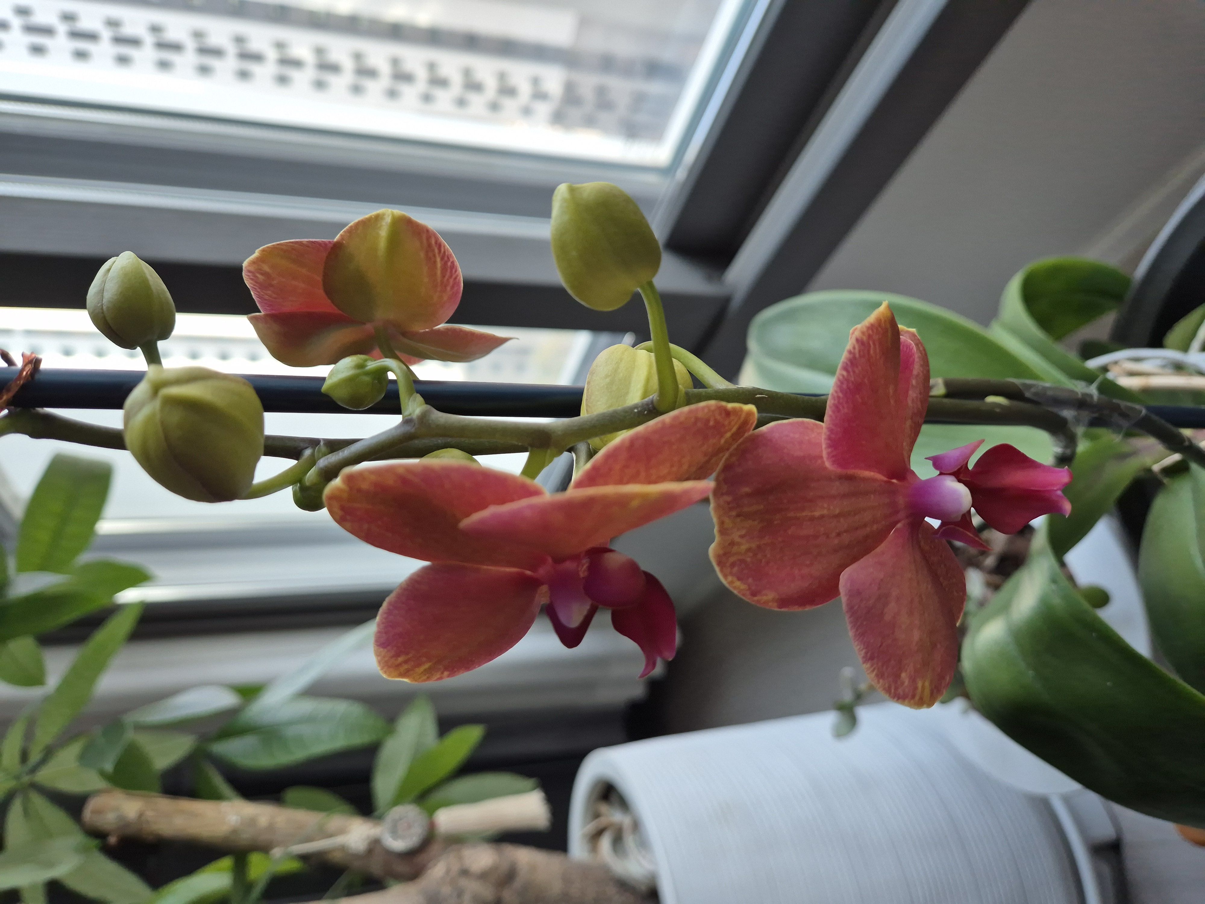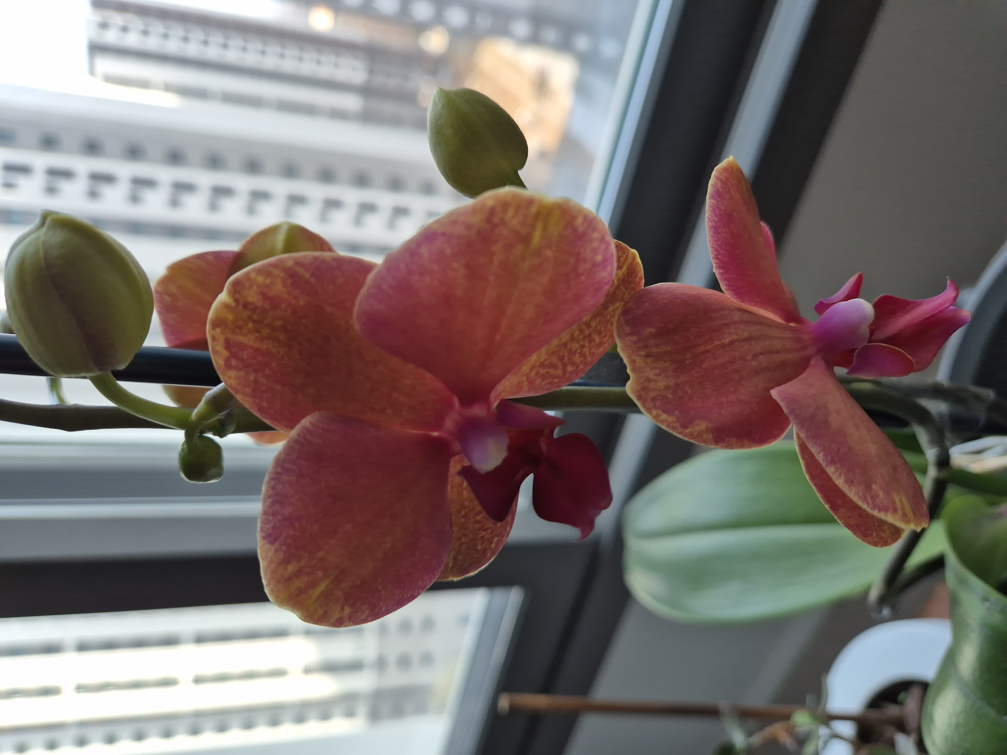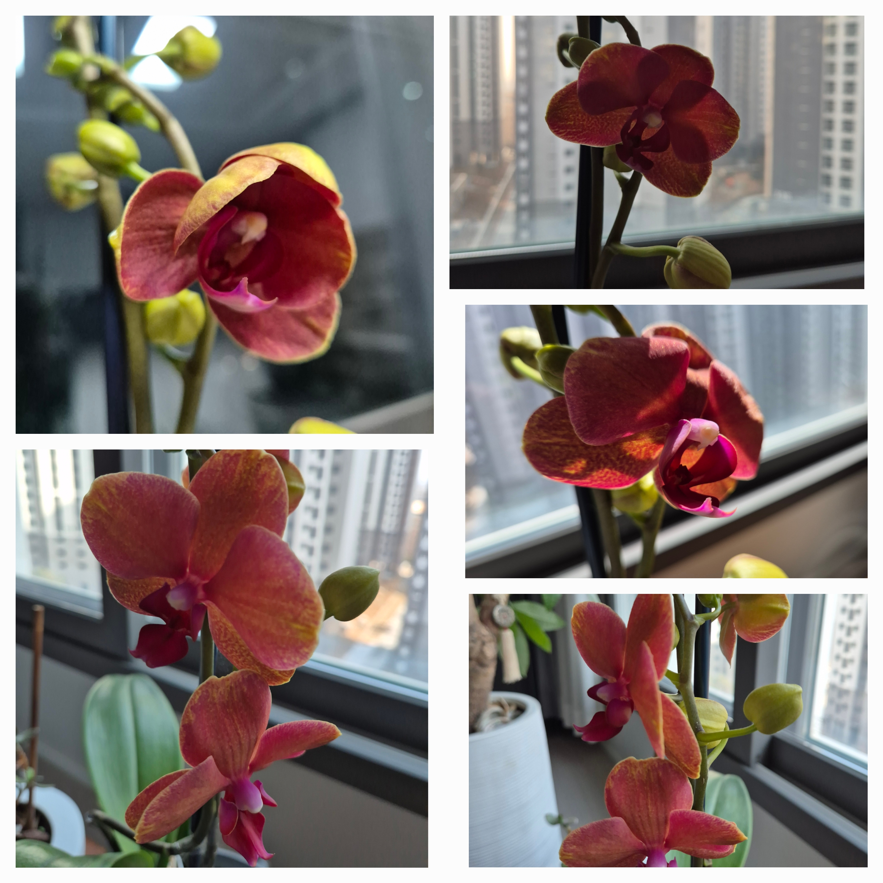 난에서 꽃망울이 맺히더니 하나하나 꽃이 피어난다.