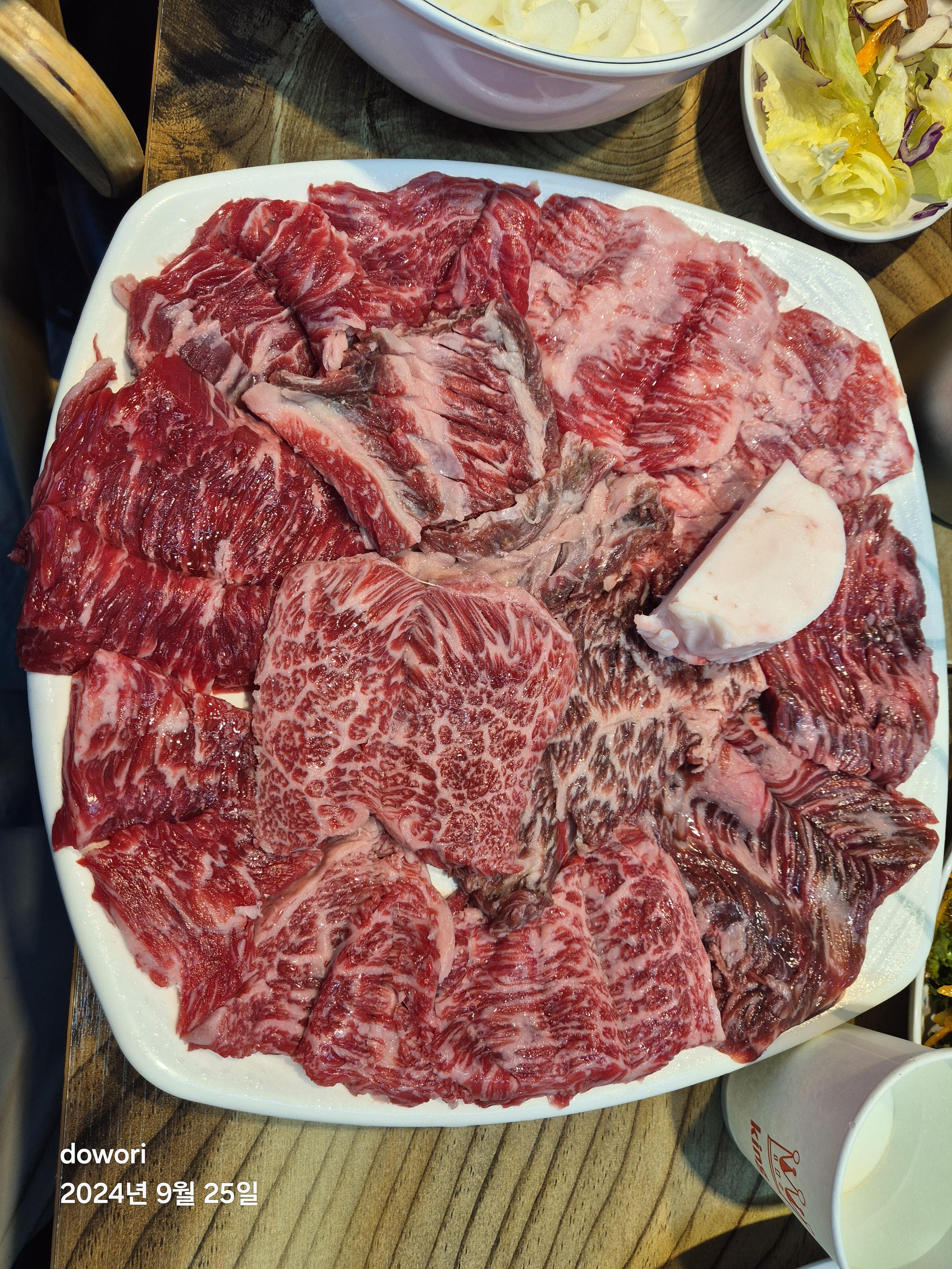 성을 내려와 광시한우촌에서 싱싱한 한우로 이른 저녁을 먹는다.
