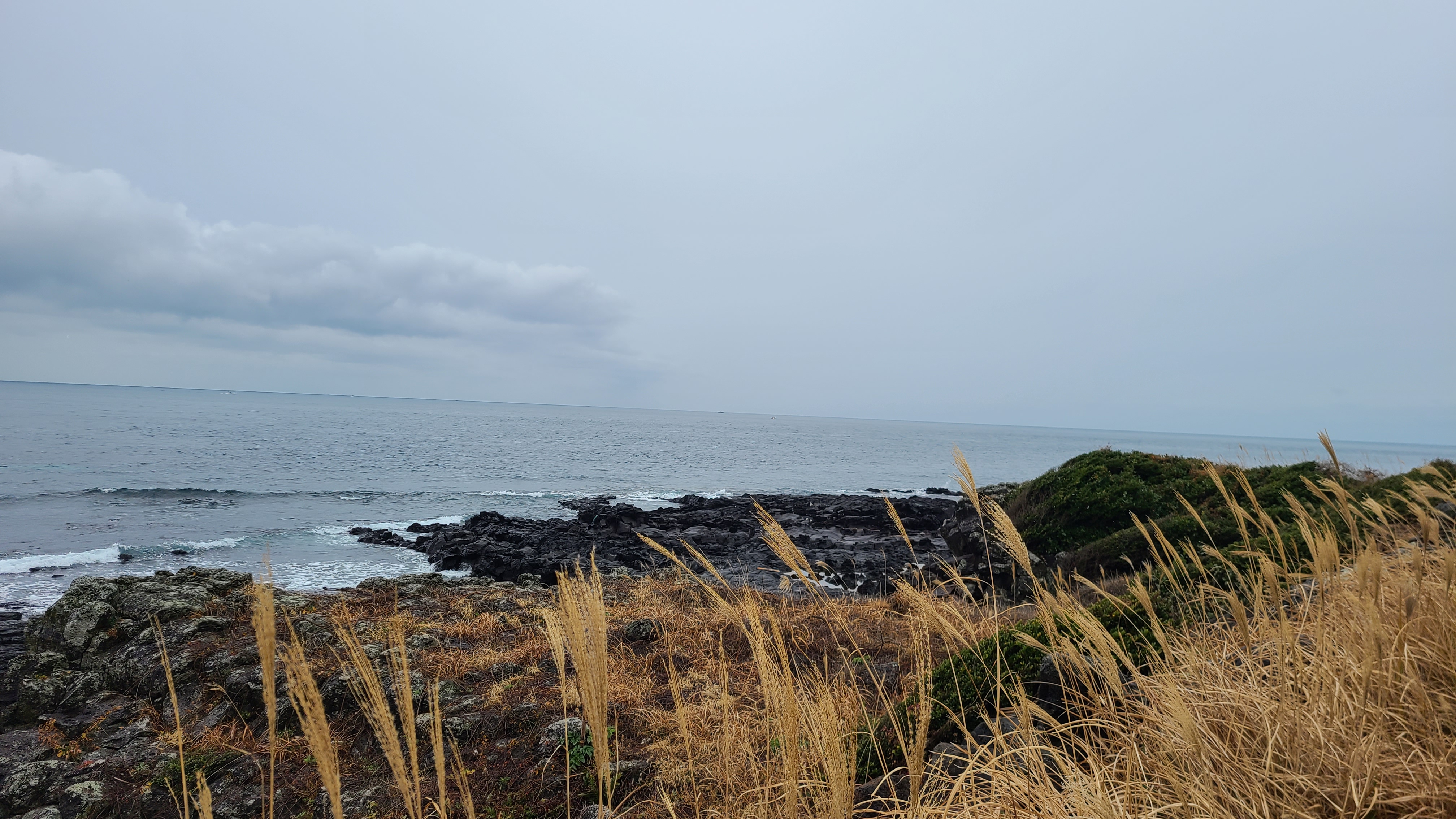 비내리는 해변을걷다가 화장실을찾는 도반에게 조금더 가자고했다가 삐치는데,수월봉하단의식당까지 이어진다.