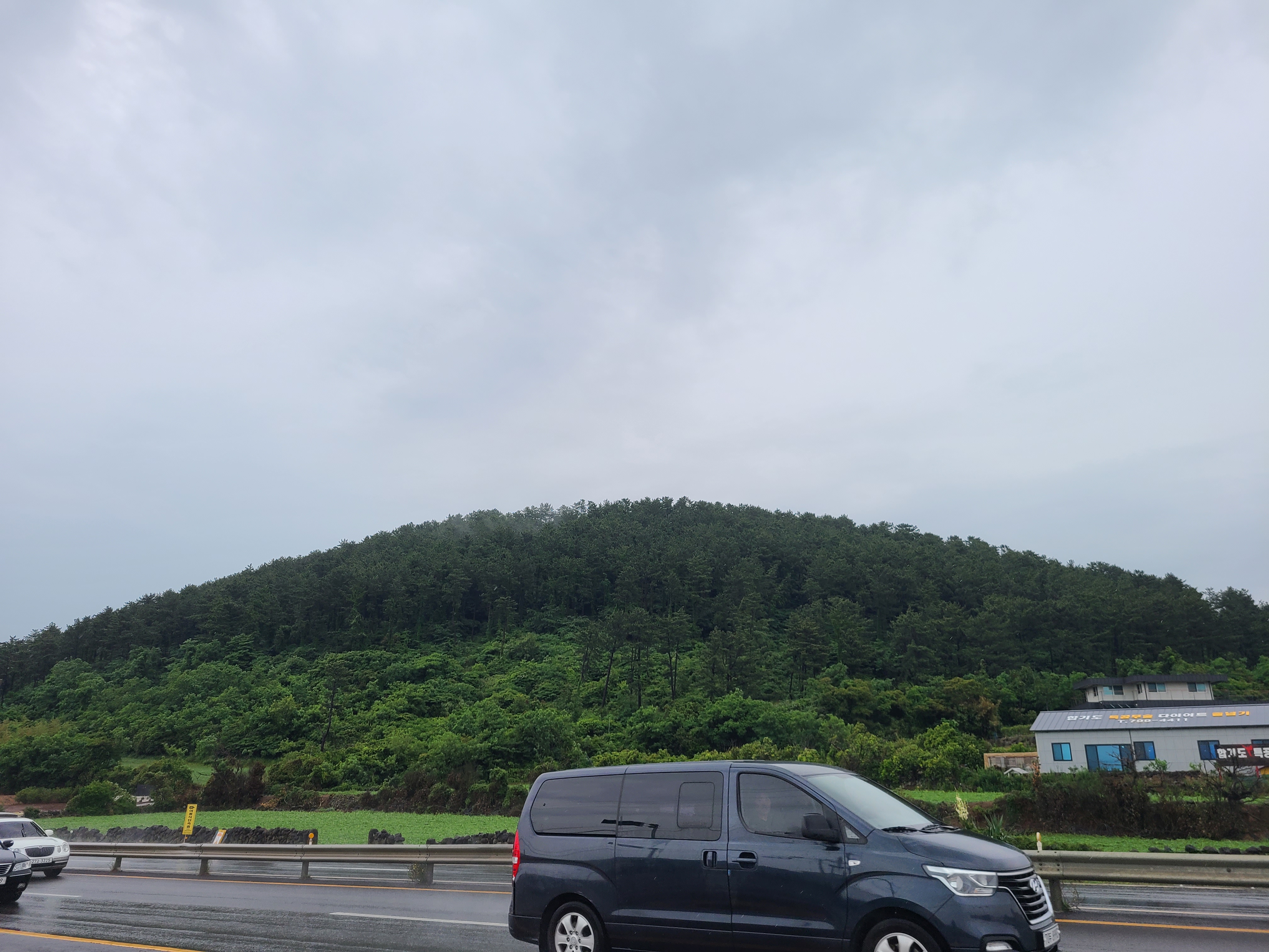 계획대로 진행하기로 하고 아침을 먹고 이슬비내리는 제주시를 경유 광령리에 내리니 소나기가 내린다.