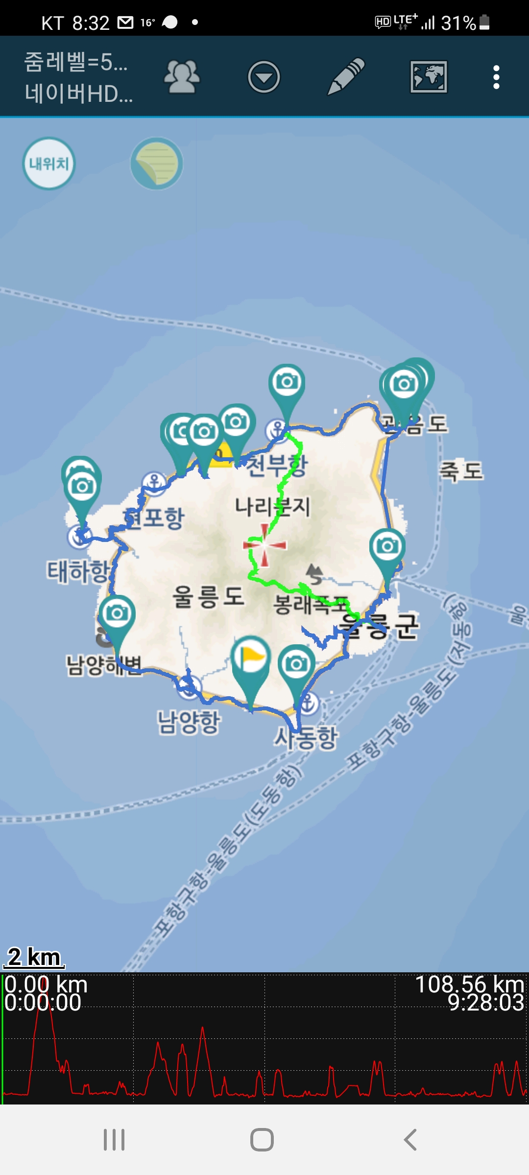 그리고 차량을 인수하여 숙소인 도동을 출발하여 역시계방향으로 섬을 한바퀴 돌아본다.