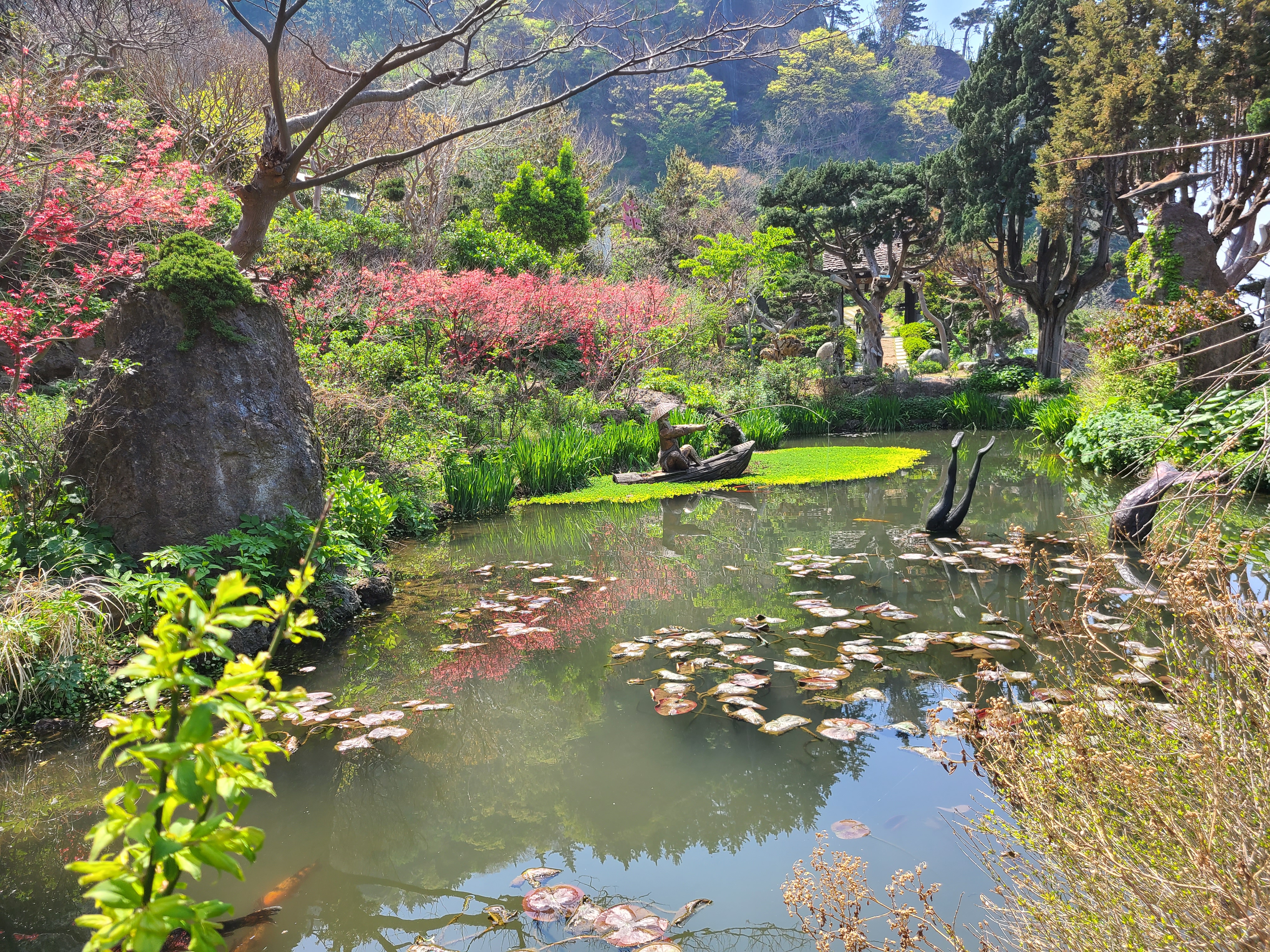 각종 분재와 화초 연못과 작품등이 혼합되어 멋진 전경과 함께 감탄이 나온다.