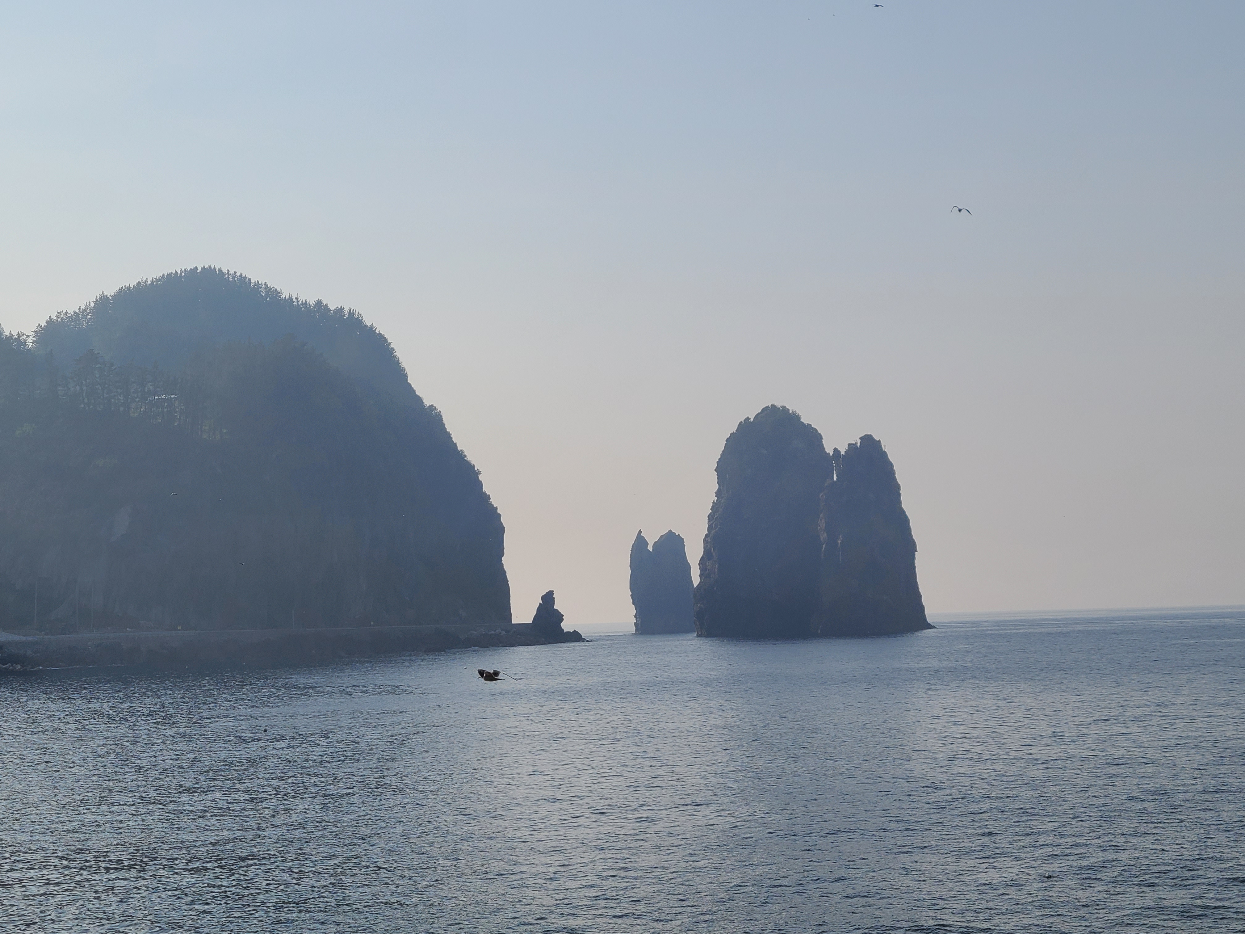 첫번째로 통구미를 방문하여 해안의 바위절경을 구경한다.
