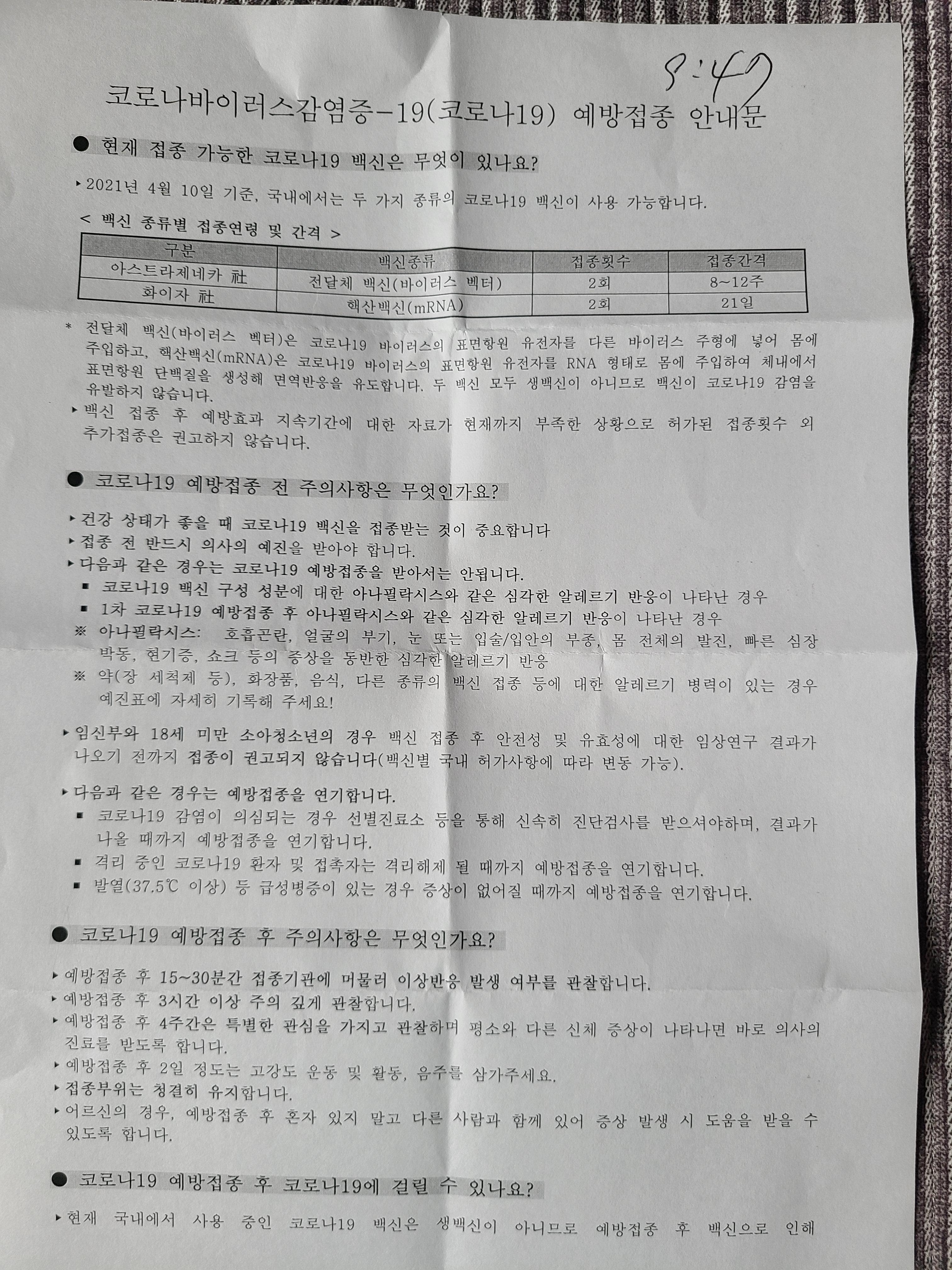나에게 주어진 백신을 아스트라제너카백신(아제백신?)이다.