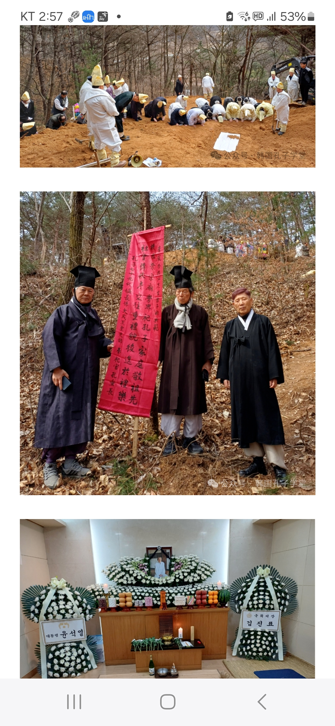 해외여행중 퇴계16대종손인 근필옹의 장례가 있었다.