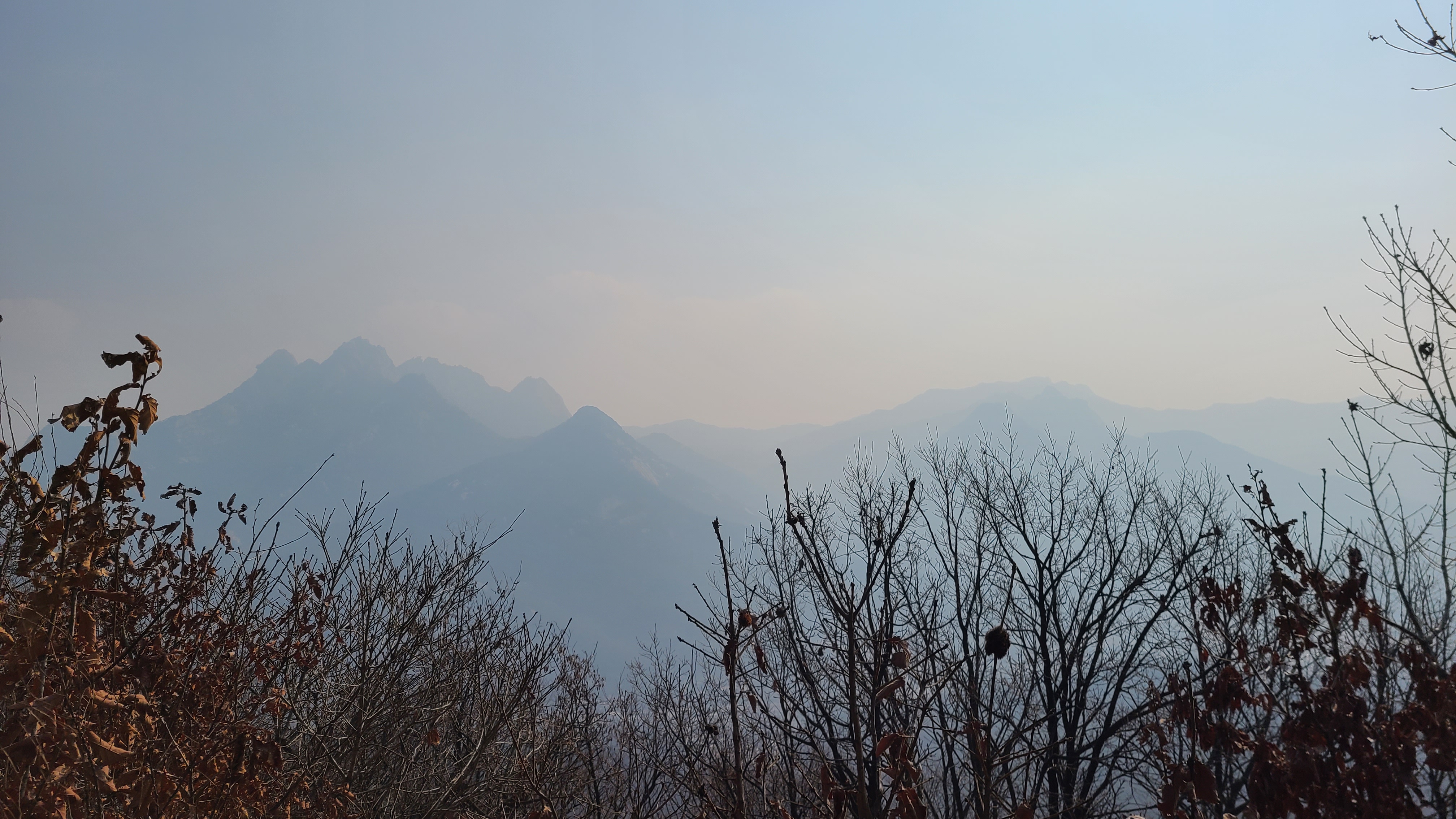 능선길도 오르고 내리며 이어지는데 미세먼지가 많아 맞은편 북한산 모습이 흐릿하게 바라보인다.
