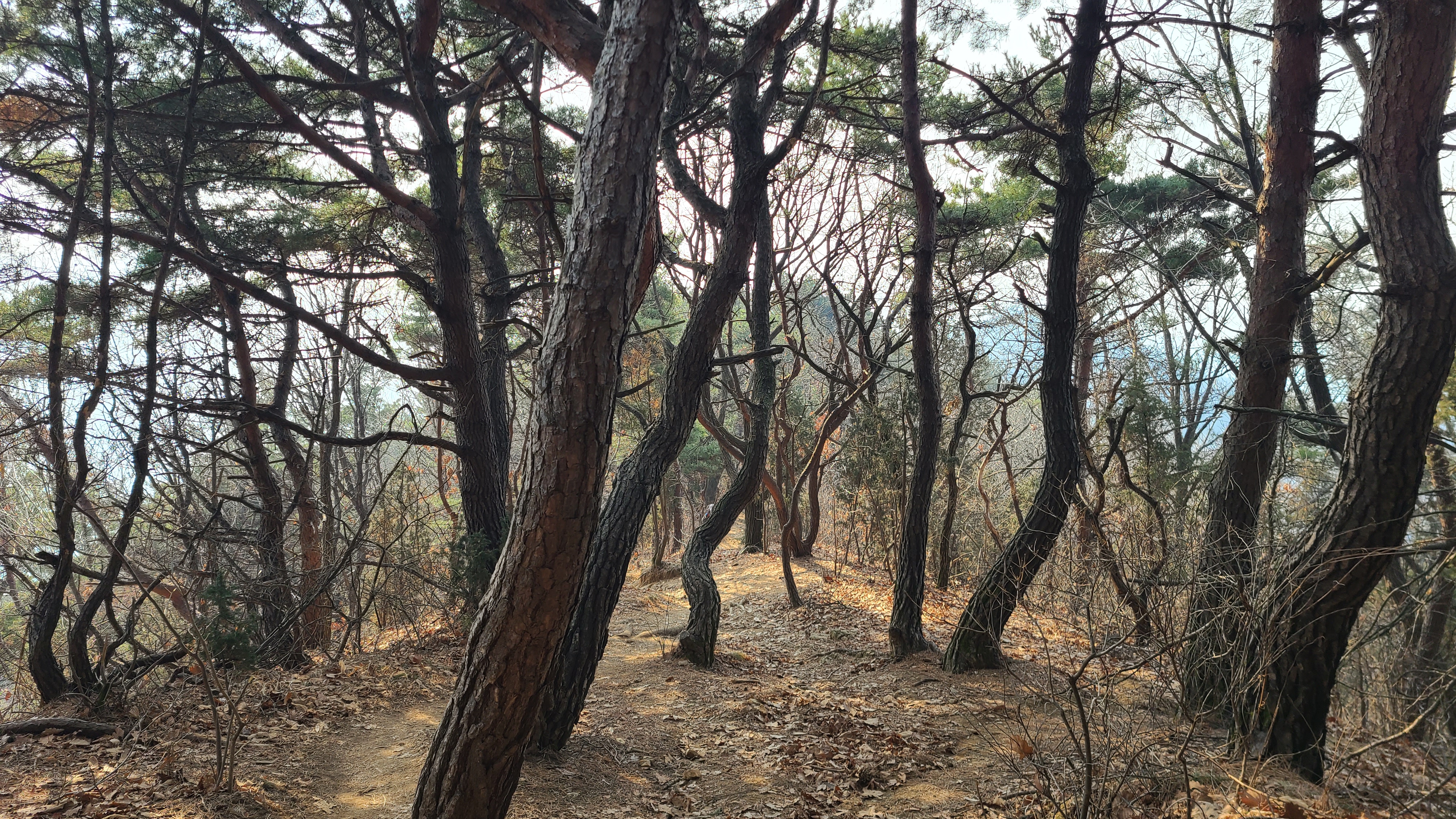 안부에 올라 물한모금으로 목을 축이고는 능선길을 따라 걷는다.