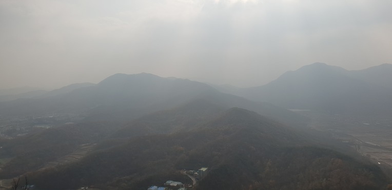 미세먼지 사이로 태화산,광덕산,망경산,설화산이 빙둘러 조망이 된다.