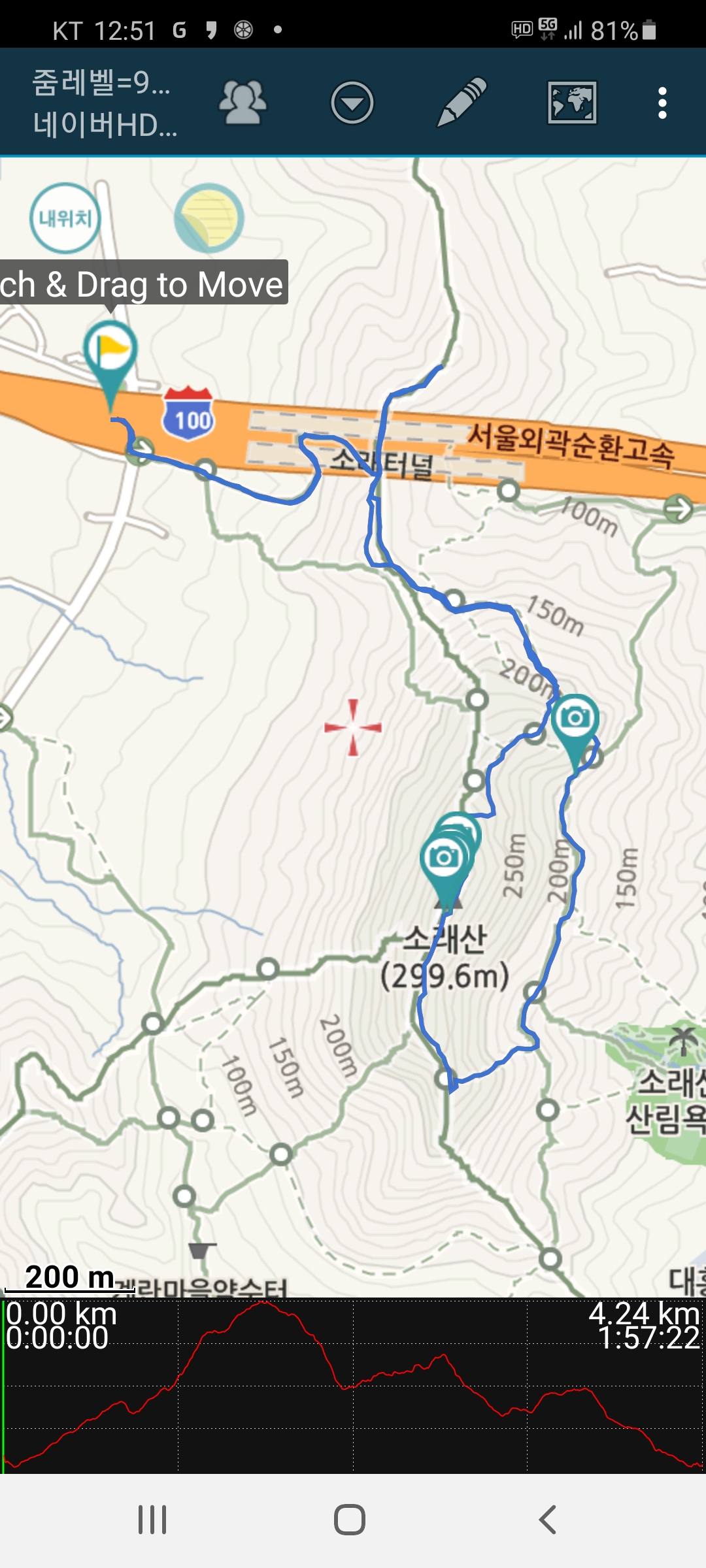만의골방향은 들머리를 놓치고 청용약수터,마애보살입상을 지나 소래터널로 돌아오니 두시간이 조금 경과